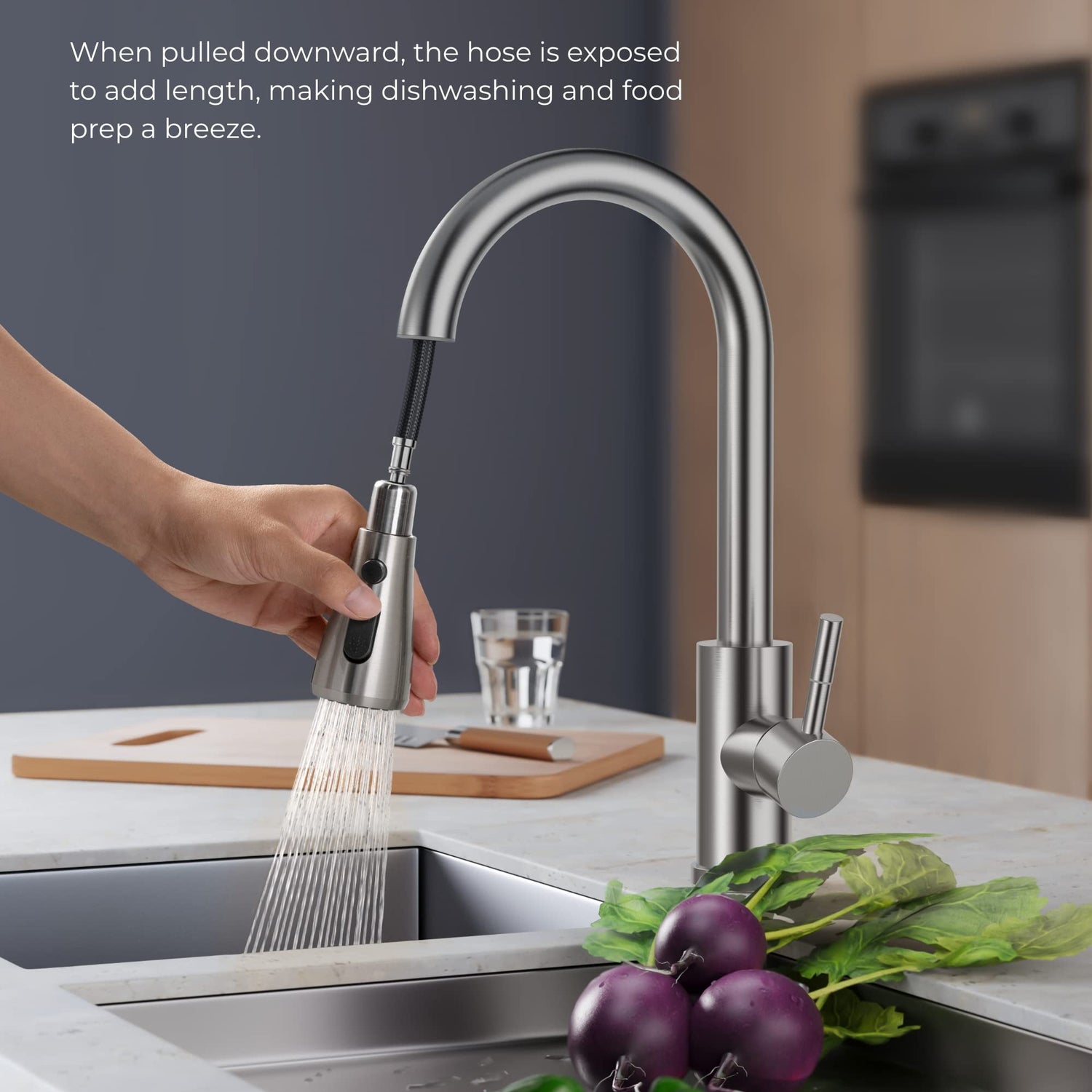 - Efficient and Simple Cleaning: The pull down kitchen faucet boasts a five-layer nanotechnology finish, resisting fingerprint and spots, and easy cleaning with a damp cloth for a tidy look —A reliable, cost-effective design