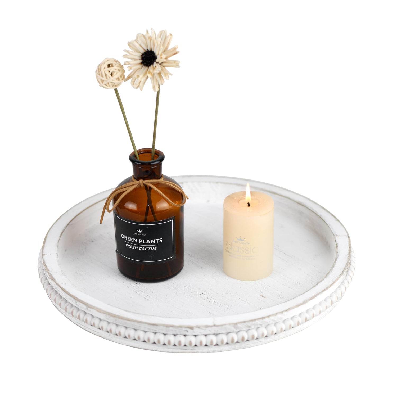 - Round Design: The 12.6x12.6 inches round design of the tray is elegant and simple, with decorative bead ,suitable for various styles of home decoration, making your home more beautiful.