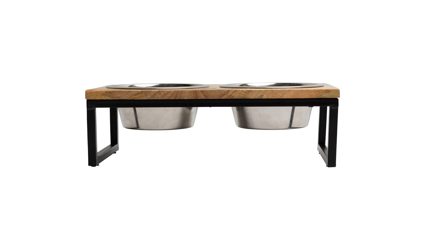 Details: EACH GF PET MANGO WOOD & METAL FEEDER IS HAND CRAFTED FROM NATURAL, SUSTAINABLE OR RECLAIMED MANGO WOOD PIECES, MAKING IT EXOTICALLY UNIQUE IN DESIGN. MASTER ARTISANS BLEND TOGETHER DIVERSE PATTERNS AND COLOR VARIATIONS INHERENT IN MANGO WOOD, THEN FINISH EACH PIECE BY HAND TO ENSURE THAT NO TWO PIECES ARE ALIKE. THIS FEEDER IS ELEVATED FOR YOUR PET'S COMFORT AND THE BEAUTIFUL STAINLESS-STEEL INSERT BOWLS ARE REMOVABLE AND DISHWASHER SAFE. PRODUCT DETAILS: MADE OF EXOTIC AND DURABLE MANGO WOOD WITH ELEVATED METAL BASE INCLUDES 2 DISHWASHER-SAFE STAINLESS STEEL INNER BOWLS WITH AUTHENTIC GF PET BURNED LOGO PAW HANDMADE IN INDIA FOR DOGS OR CATS, AVAILABLE IN S, M, L, L-TALL