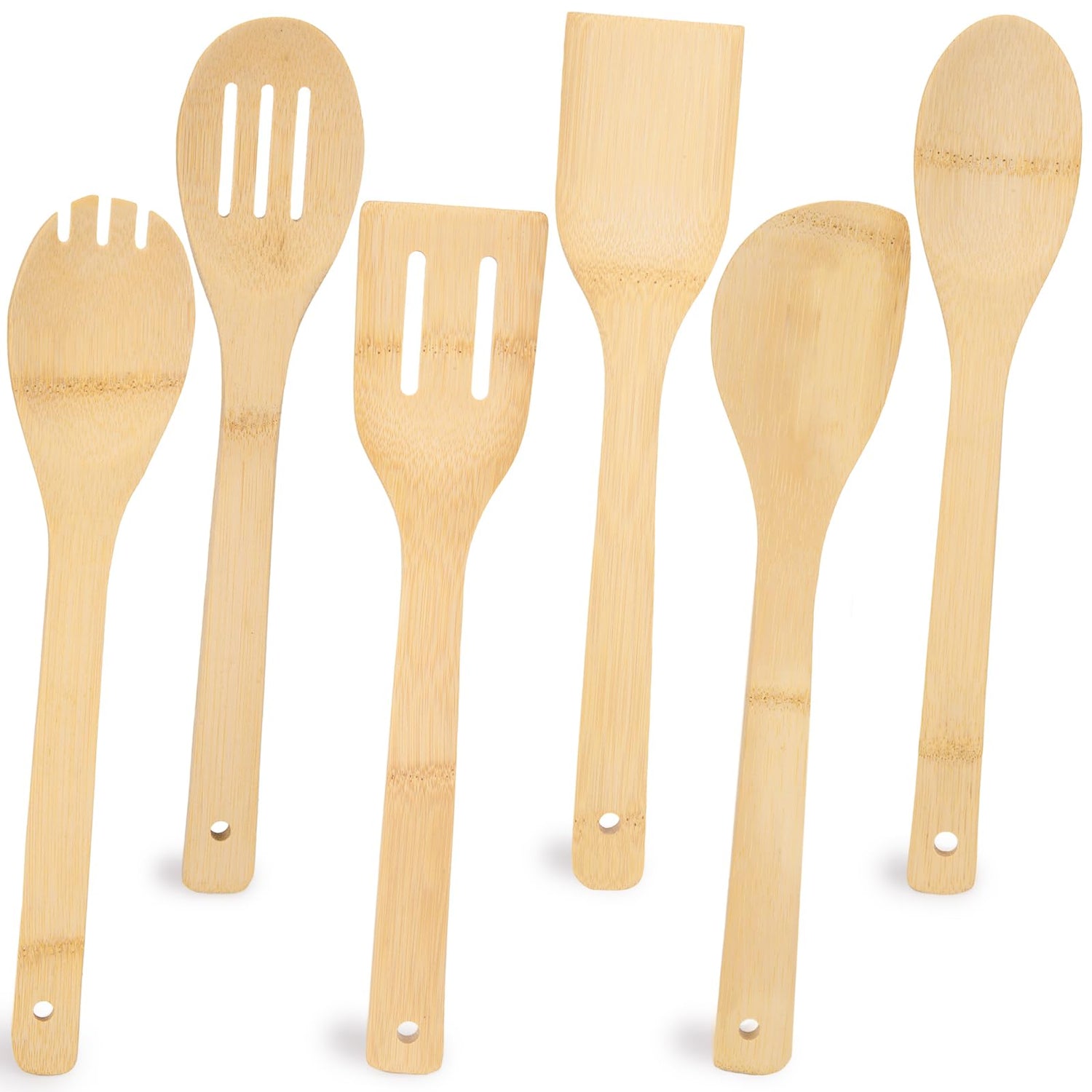 - Cooking Essentials Kitchen Set - You'll receive 6 different styles of utensils to cater to a wide range of your cooking needs. The soup spoon makes serving creamy soups a breeze, while the spatula, slotted spoon, and fork are perfect for flipping, stirring, and serving dishes like steak, fresh salad, and sauces