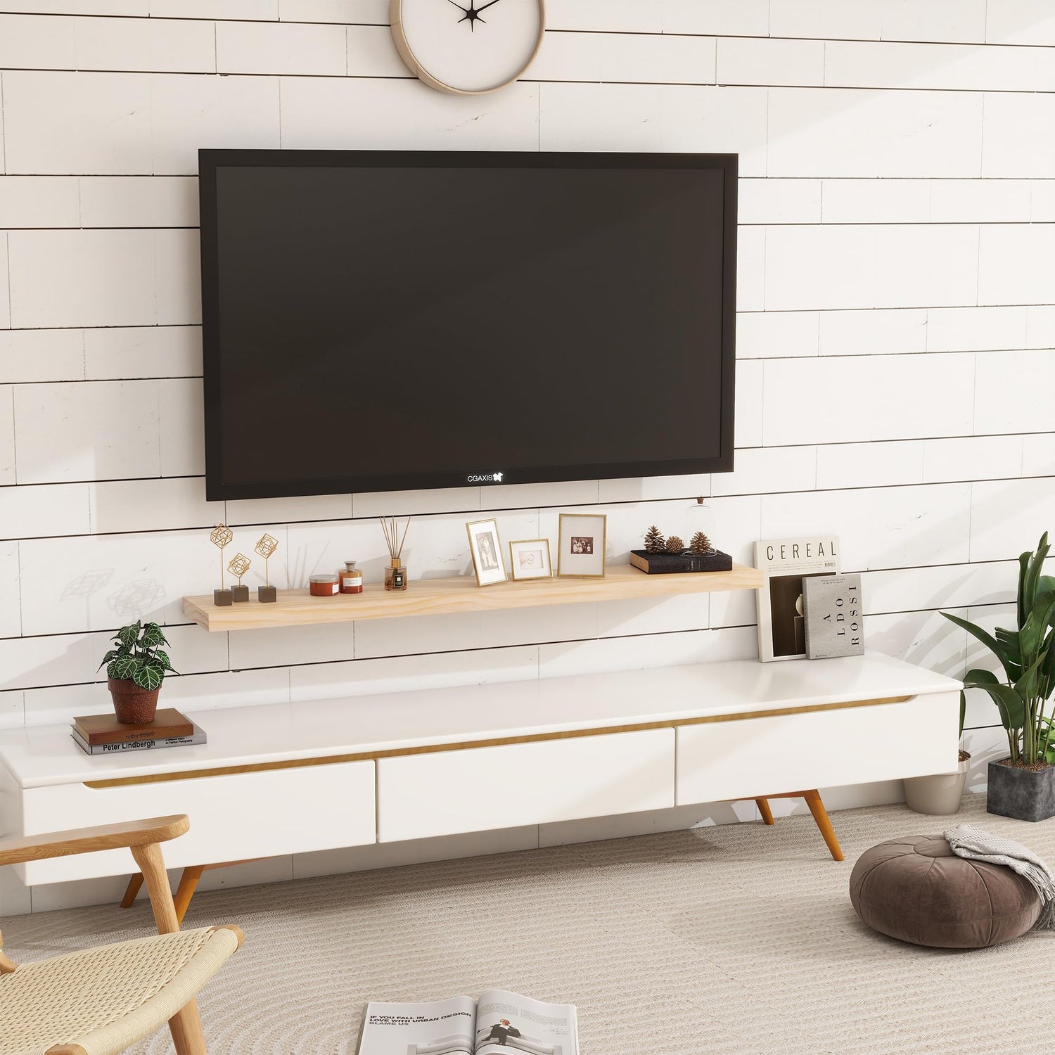 Heimlove Wood Floating Shelves for Wall,Fireplace Mantel Shelves,Rustic Farmhouse Floating Shelves 48 inch,Solid Pine Wood Wall Shelf for Bathroom,Bedroom,Living Room,Kitchen,Office Decor-Natural