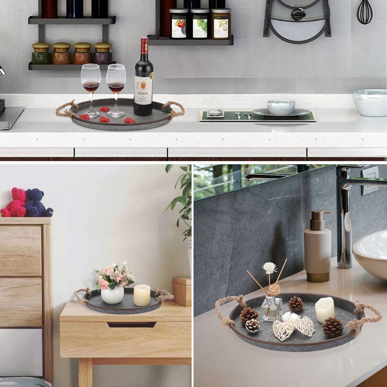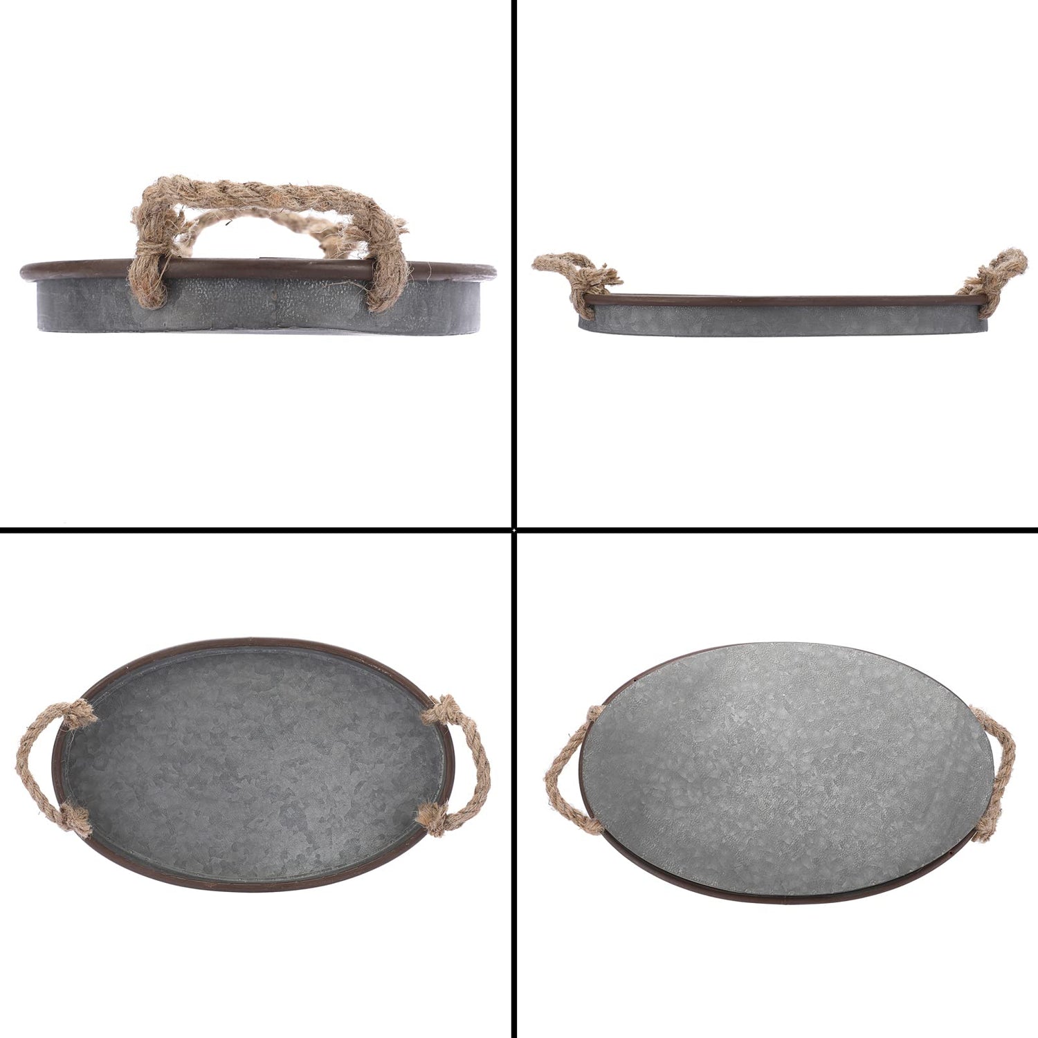 - Industrial Style Design - Rustic serving tray features a galvanized metal base that has been lightly distressed with rust color trim.This metal tray comes with Nautical rope handles which makes making it super easy to pick-up and carry, with a vintage fashion sense it is perfect for serving on various occasions