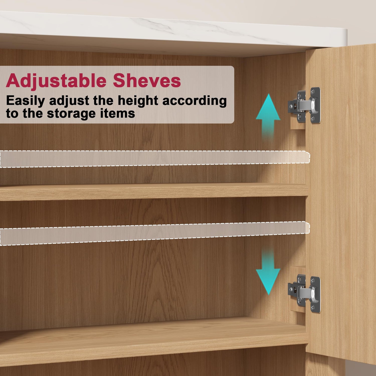 - Premium and Sophisticated Furniture: Crafted with natural wood veneer and a faux marble-patterned countertop, this bathroom wall cabinet exudes an air of refined elegance. Its curved design and smooth finish not only elevate the aesthetic but also make it a modern and stylish storage solution.