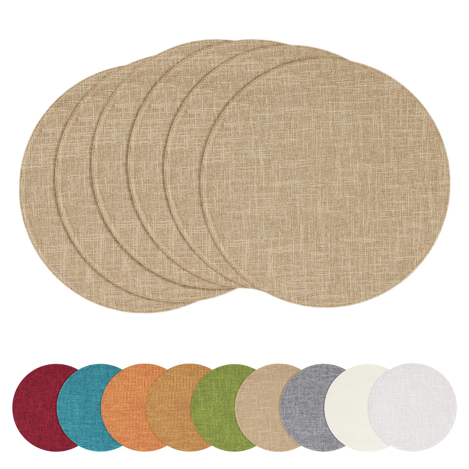 - [Large Size] Includes 6 pieces of round place mats. Diameter 15 inches, perfectly compatible with common tableware such as plates, bowls and cups. Multiple color options