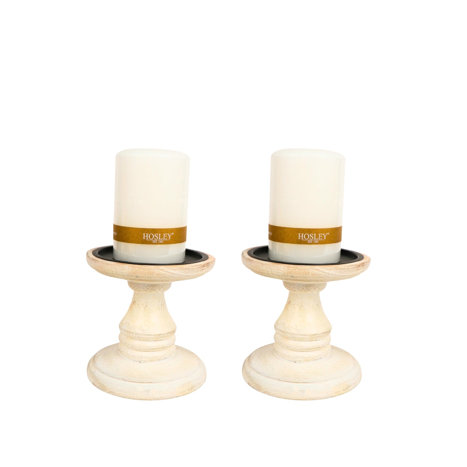 Hosley White 5 Inch High Wooden Pillar Candle Holder Country Style. Ideal Gift for Wedding Party Home Spa Reiki Aromatherapy LED Votive Candle Gardens W1
