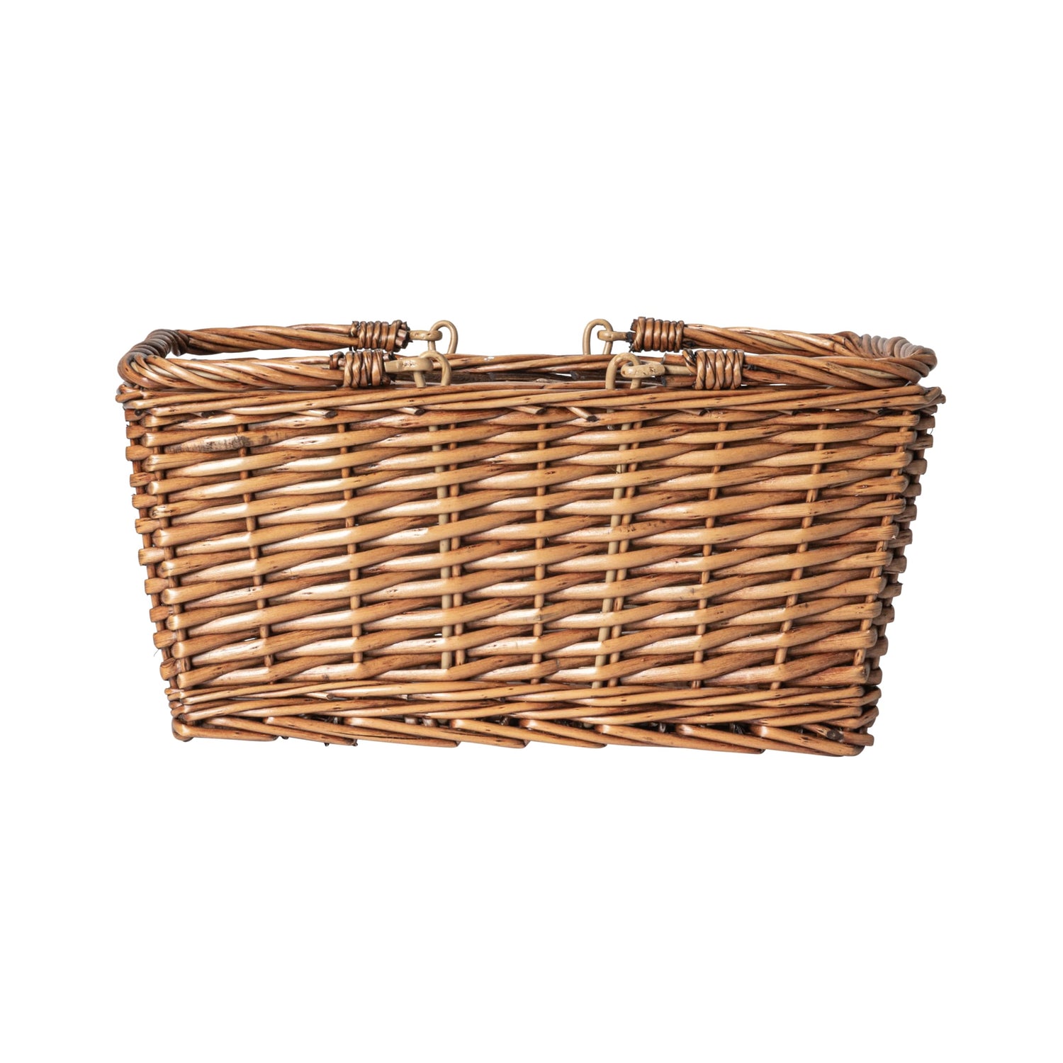 Details: This woven market basket is perfect for both function and decor due to its attractive weave and durable design. Handwoven of natural fibers, this basket is one of a kind and might differ slightly in size and color. This beautiful woven basket is made of golden willow reeds handwoven into a sturdy, classic shape. It’s spacious interior and open top makes it perfect for display, carrying items to and from the car or simply taking a stroll in the park. The tapered profile and textured weave is a wonderful eye-catcher–a wonderful accent for the guest bathroom, bedroom, kitchen or living room. The willow material makes it lightweight yet hardy and super comfortable to carry in both hands or even on the hip! The basket has a pair of swing handles woven into an interesting, spiral weave. These handles are securely wrapped around metal anchors made of white powder-coated steel and discreetly woven into the sides. These anchors provide the support and durability to last you through countless trips to the farmer’s market, grocery store or local park. Fill this basket with fresh local vegetables, fruits, breads, picnic lunches, guest towels, toiletries and much more. Its wide range of utility, elegant style and natural durable materials make this woven market basket perfect for many different purposes. This woven market basket is a necessity for anyone who loves natural, durable and multipurpose storage options for their home.
