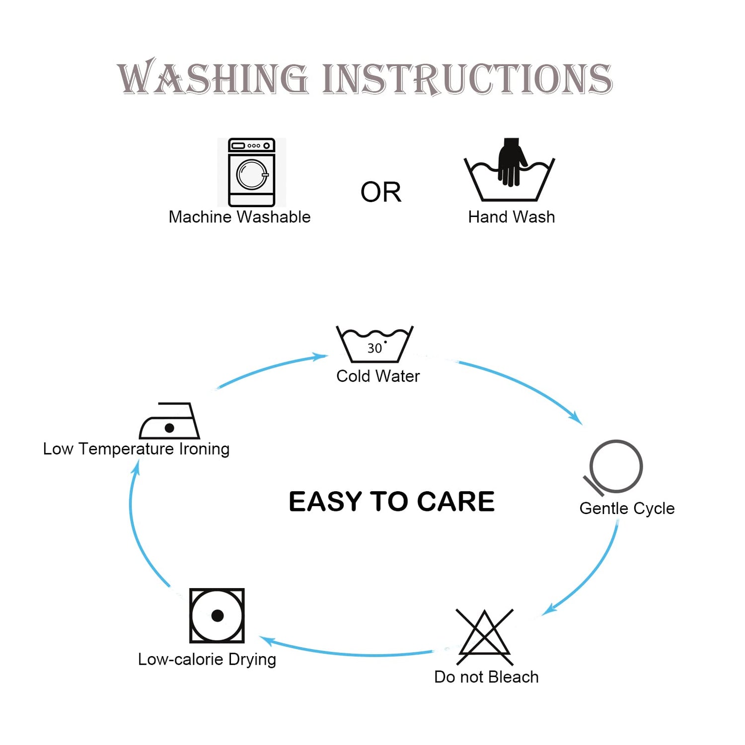 • EASY CARE: Machine washable in cold water, gentle cycle. Preferably hand wash, tumble dry low or lay flat to dry. If necessary, iron the reverse side, do not bleach.