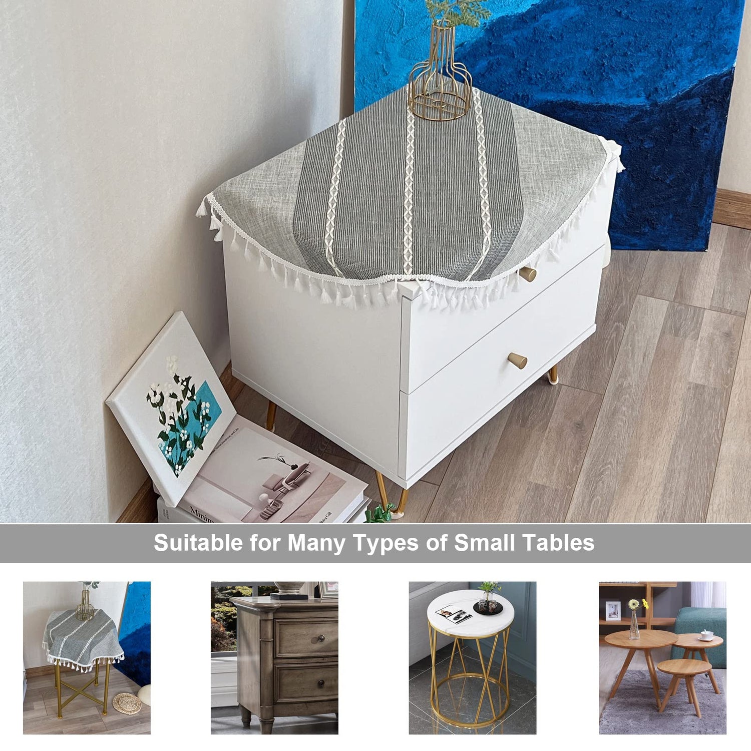 • SUITABLE SIZE: Round tablecloth 24 inches in diameter, fits round tables from 5" to 17" in diameter. It can also be used for plant stand, dining room table, bedside table, decorate your kitchen.