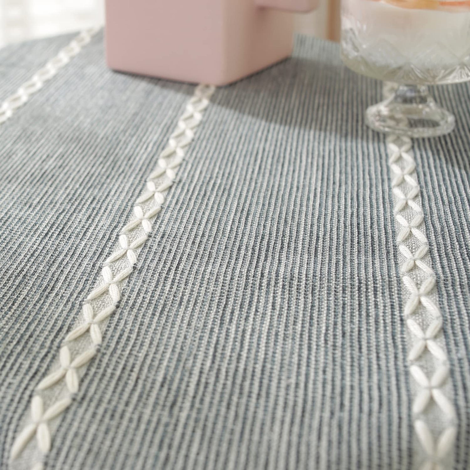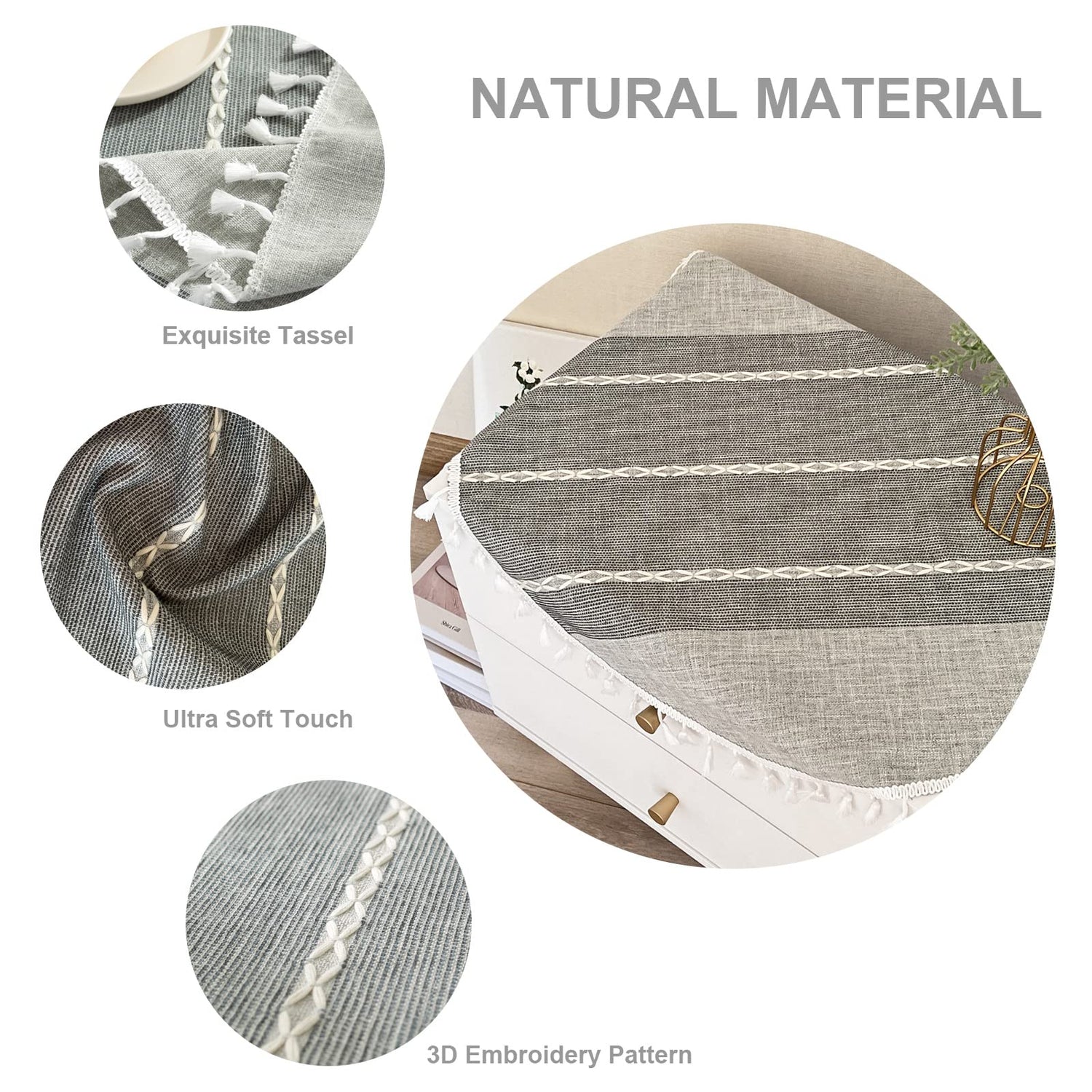 • UNIQUE DESIGN: The linen tablecloth features a simple, classic embroidered pattern with a neat tasseled edge to add charm to your dining table. The heavy-duty fabric can better protect your table.