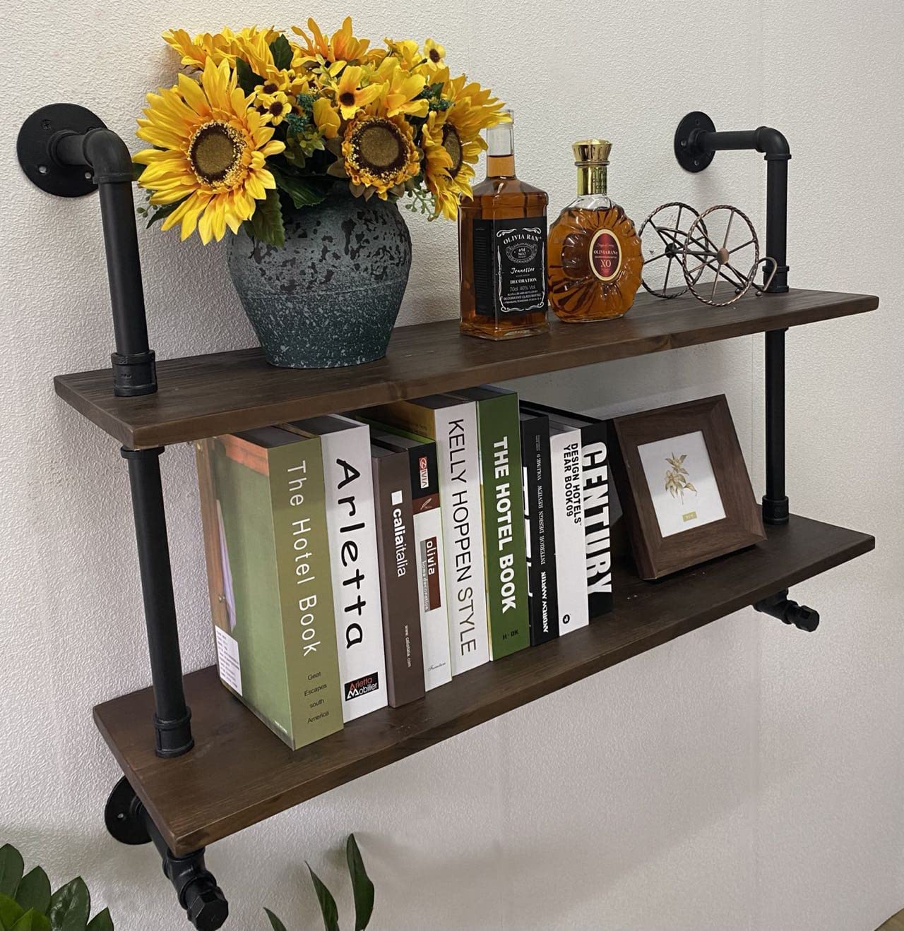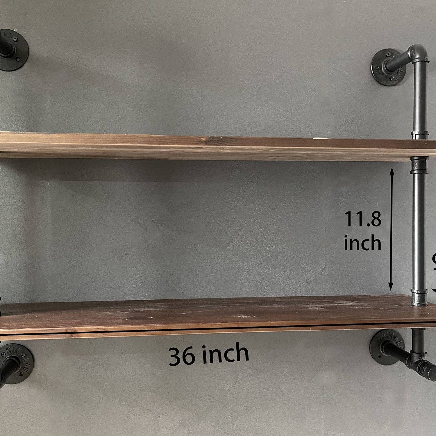 - 【Hanging On the Wall to Create Storage Space】This 2 tier industrial pipe shelf , will not occupy much place of the home. On the contrary,this pipe shelves with wood will create more storage space for you to help you better organize. Moreover, the metal round tube pipe hanging shelf bracket is fixed on the wall, which enhances the stability and firmness.