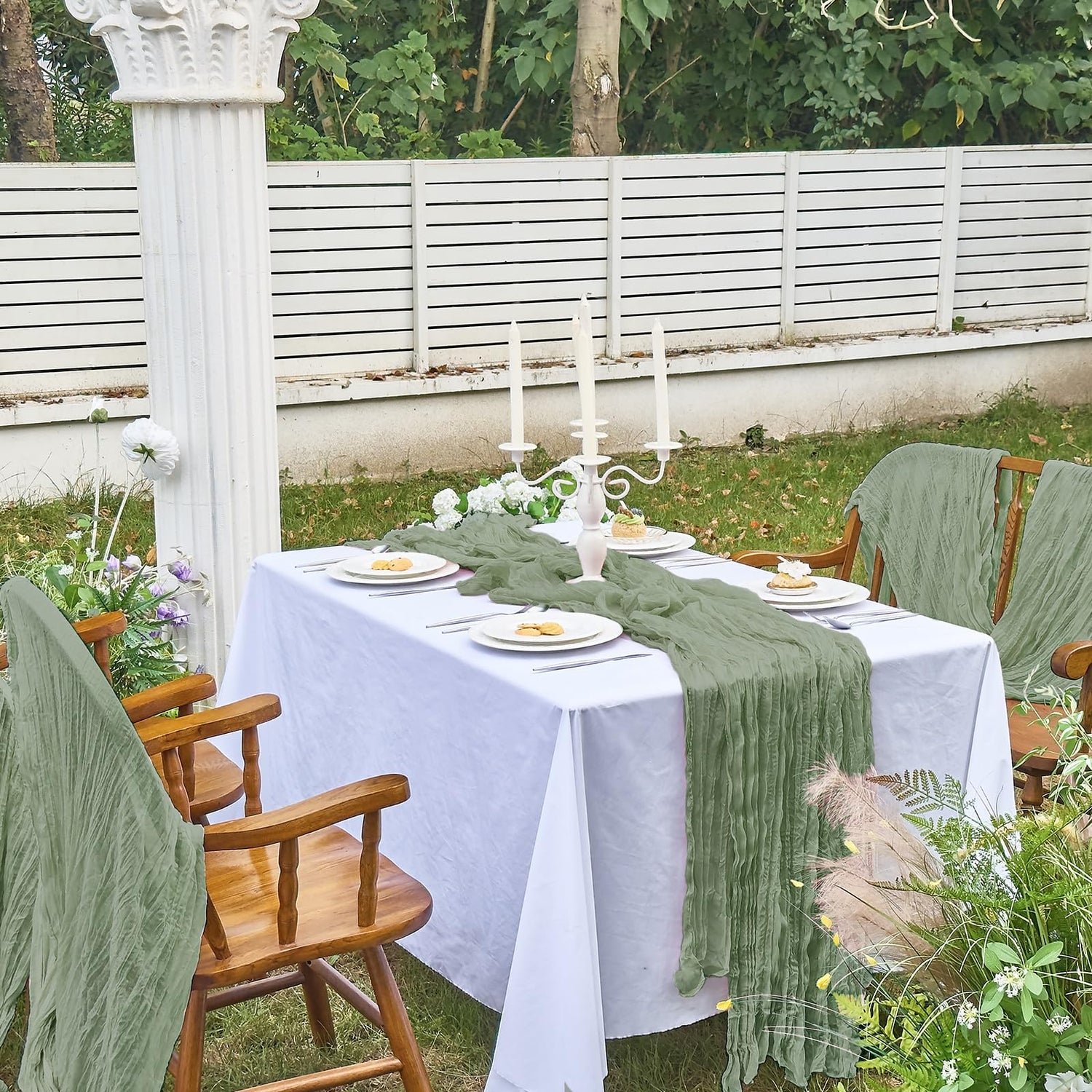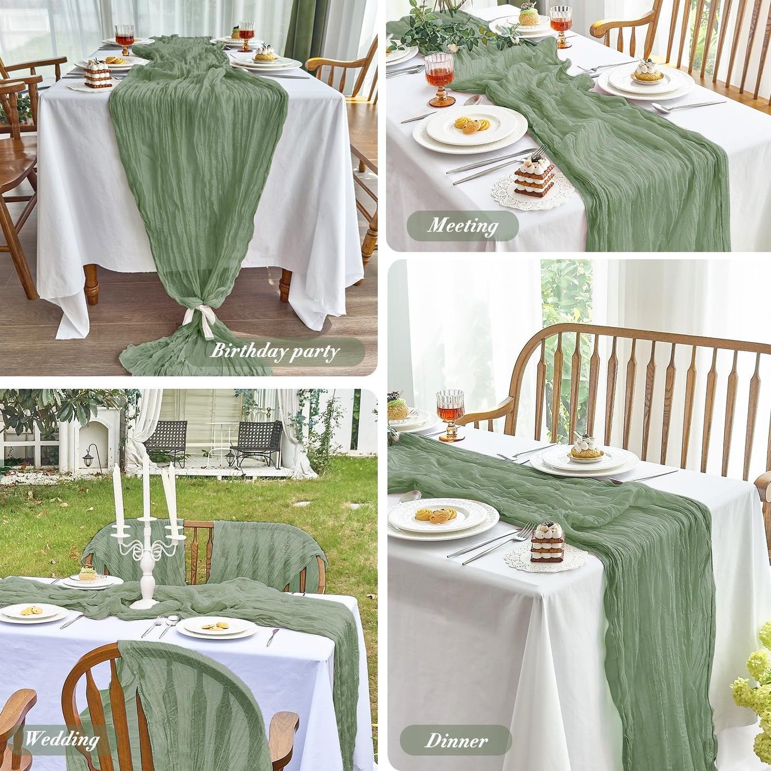 IVAPUPU 2 Pcs Cheesecloth Christmas Table Runner - 10ft Sage Green Boho Gauze Cheese Cloth Table Runners for Baby Shower Decoration Wedding Party Summer Garden Farmhouse