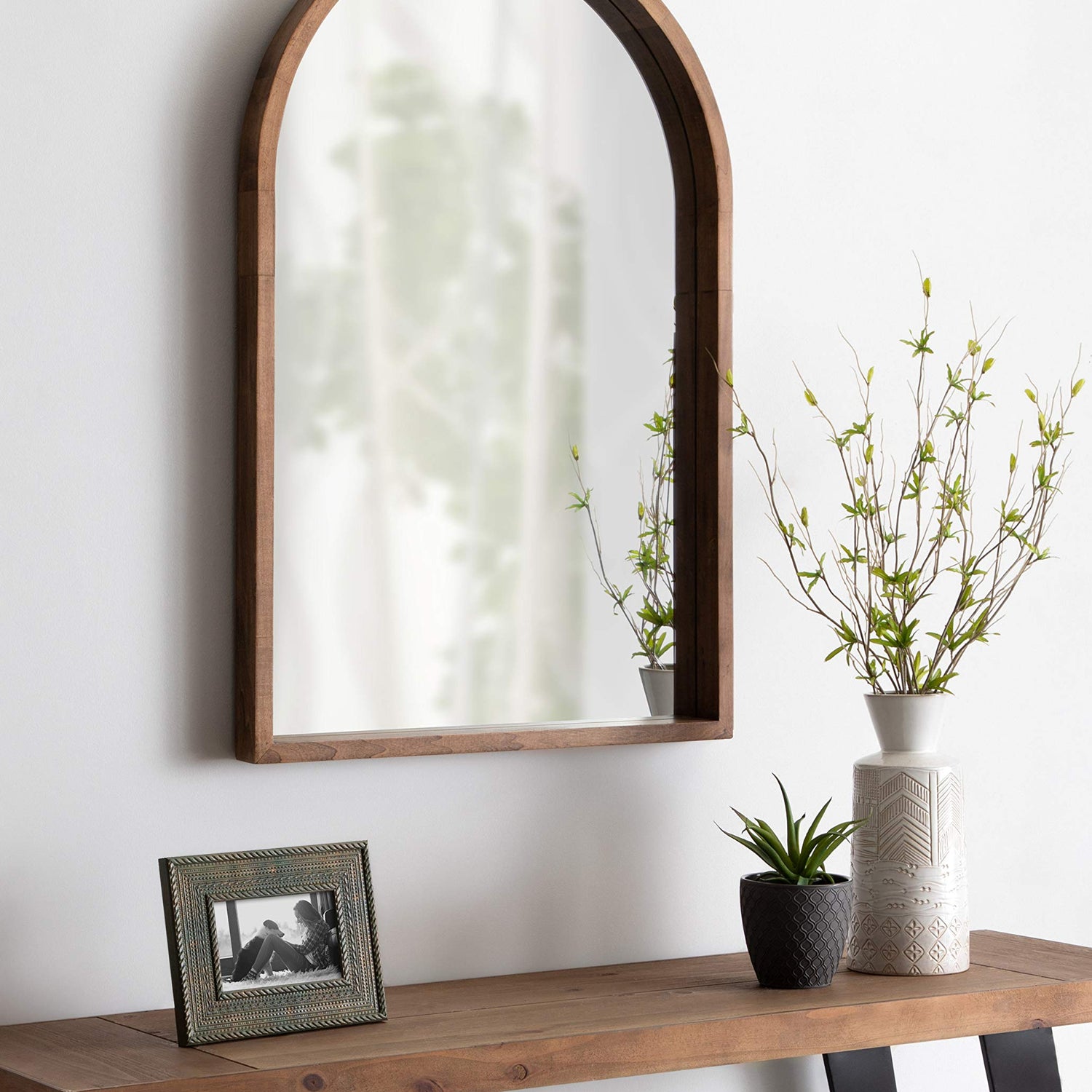 Kate and Laurel Hutton Rustic Modern Farmhouse Arch Mirror, 24" x 36", Natural Wood Finish