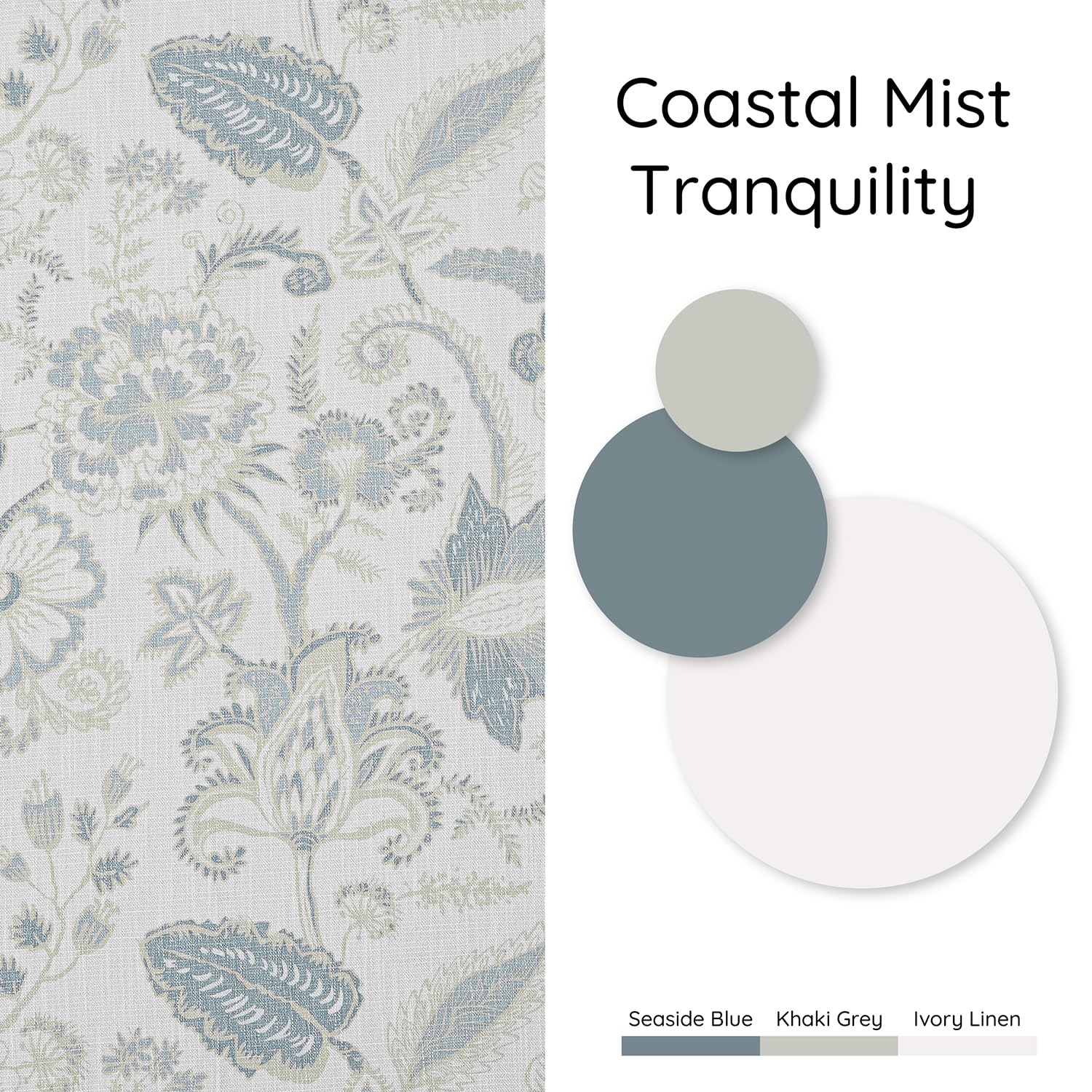 - Ready Made: Each package includes 2 seaside blue tan floral botanical leaf pattern COTTON LINEN textured heavy Fabric curtain drapes which dress up your home with rustic romance. Each measures 40"Wx108"L.