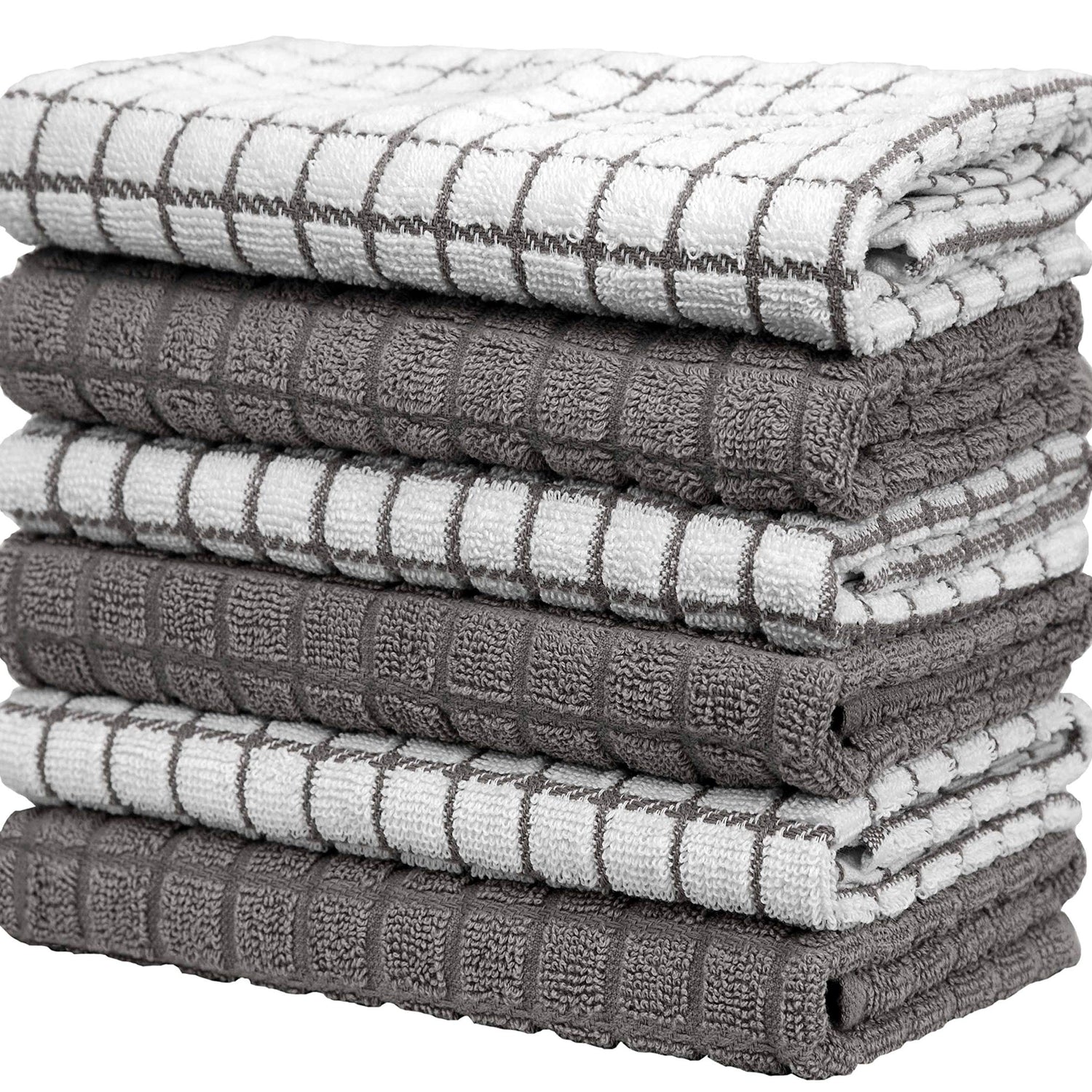 • LONG LASTING & ENVIRONMENT FRIENDLY- Our kitchen towels maintain their premium feel and classic design even through hundreds of washes reducing your waste of paper towels. This pack of 6 will allow you to always have a fresh towel handy.