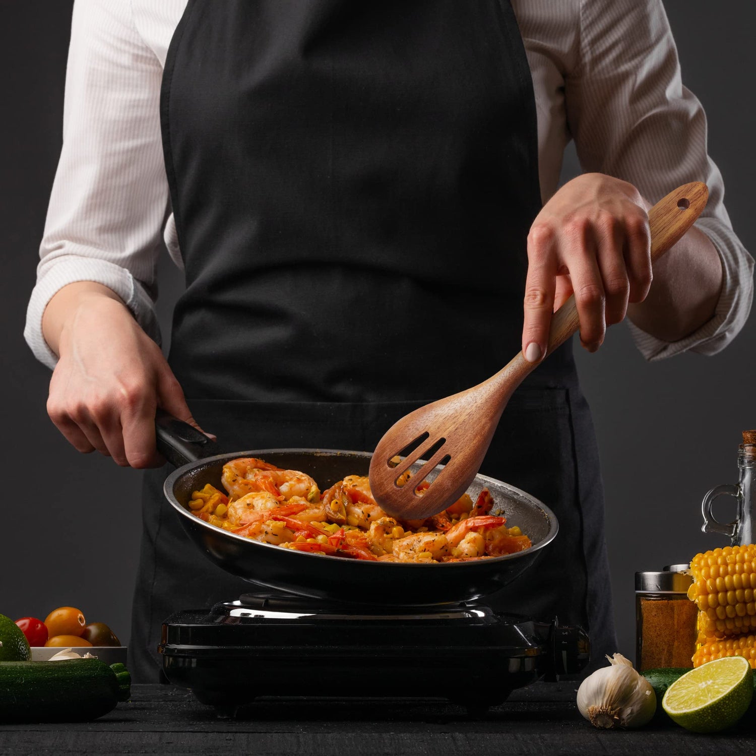 • 5-piece set for all cooking needs: If you're looking for the best wooden spoons for cooking your favorite recipe, look no further. Our 5 Piece wooden spoon set is perfect for stirring, mixing, draining, and serving. This set includes a slotted spoon, spatula set, and pasta server.