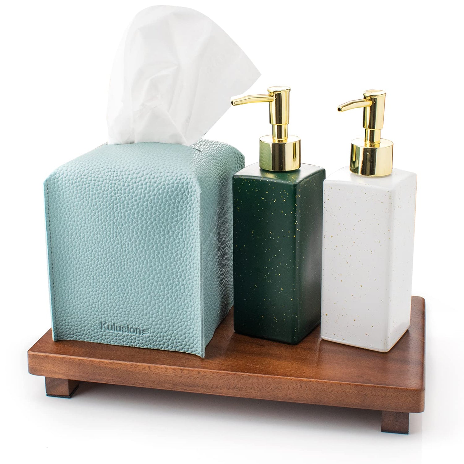- ■Farmhouse Style: This adorable wood display riser stand is designed in retro colors with simple farmhouse rustic styles, bring you a relaxed and comfortable feeling, add more cozy & charm to your home harmonious ambiance. you'll love this new soap tray by KULUSION.