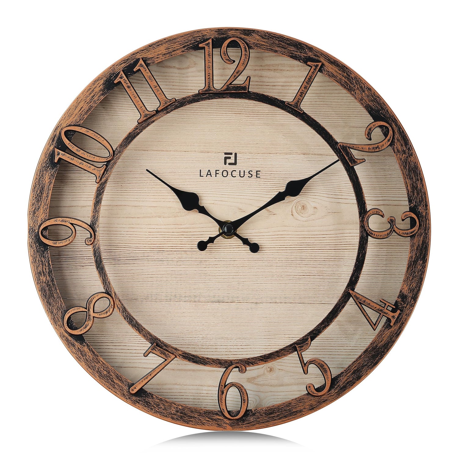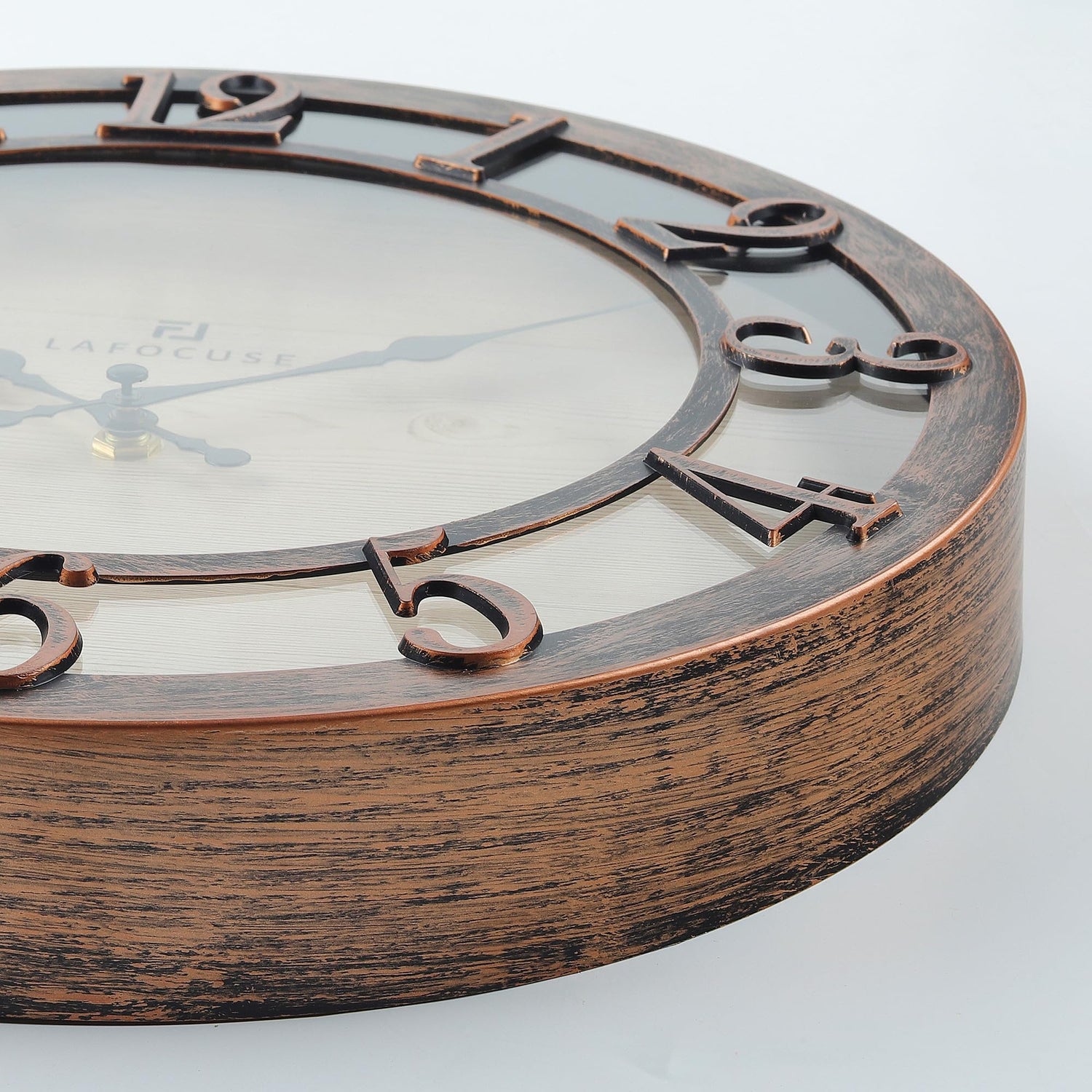 - Distressed & Farmhouse: Brown wood grain dial, black hands, integrated bronze and black worn frame and numbers provide a shabby chic and vintage appearance. Add a touch of vintage flair to your home decor with this rustic wall clock. Very stylish and different, easily to attract other's attention.(The main color of the frame is bronze, the secondary color is black. )