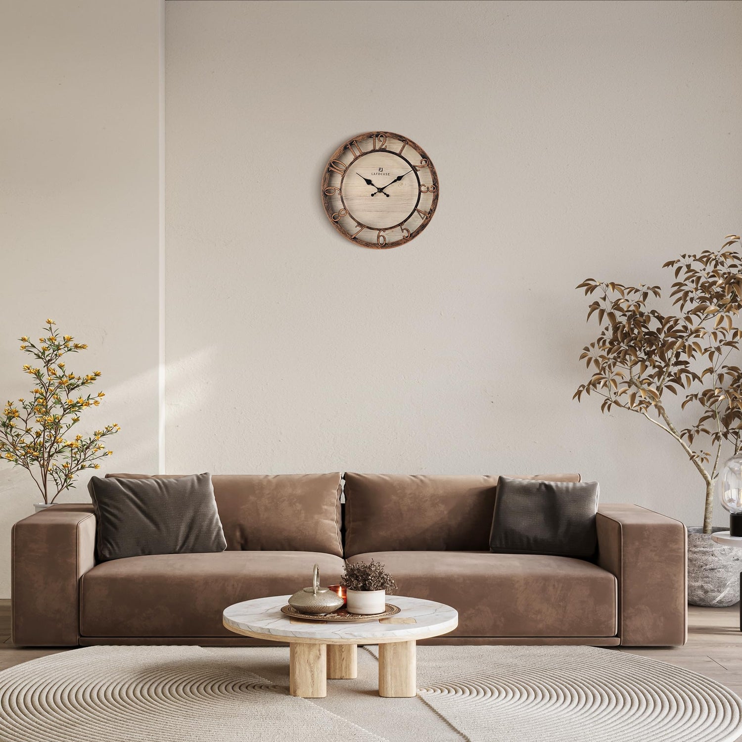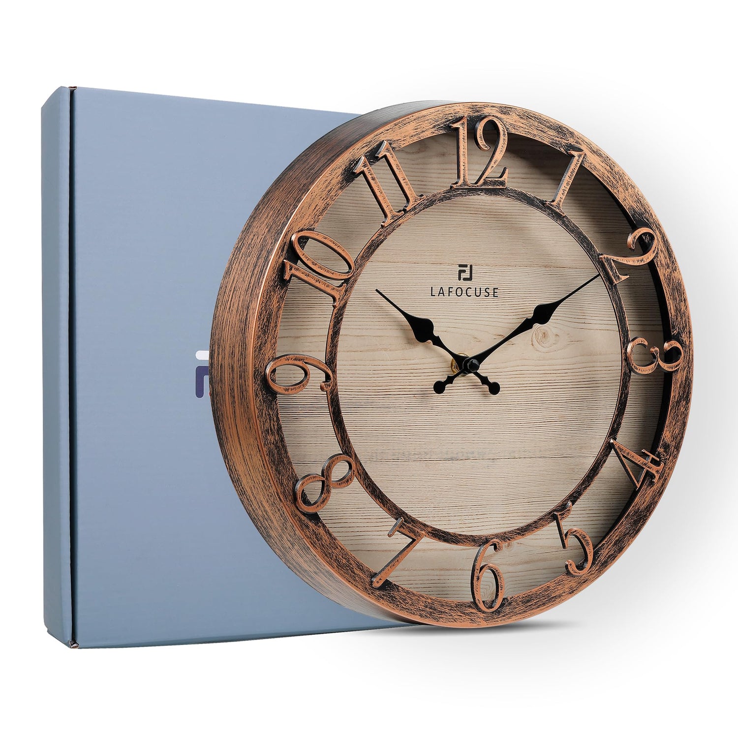 Lafocuse 12 Inch Silent Brown Wall Clocks Battery Operated, Farmhouse Wall Clock Analog for Kitchen Living Room, Rustic Home Décor