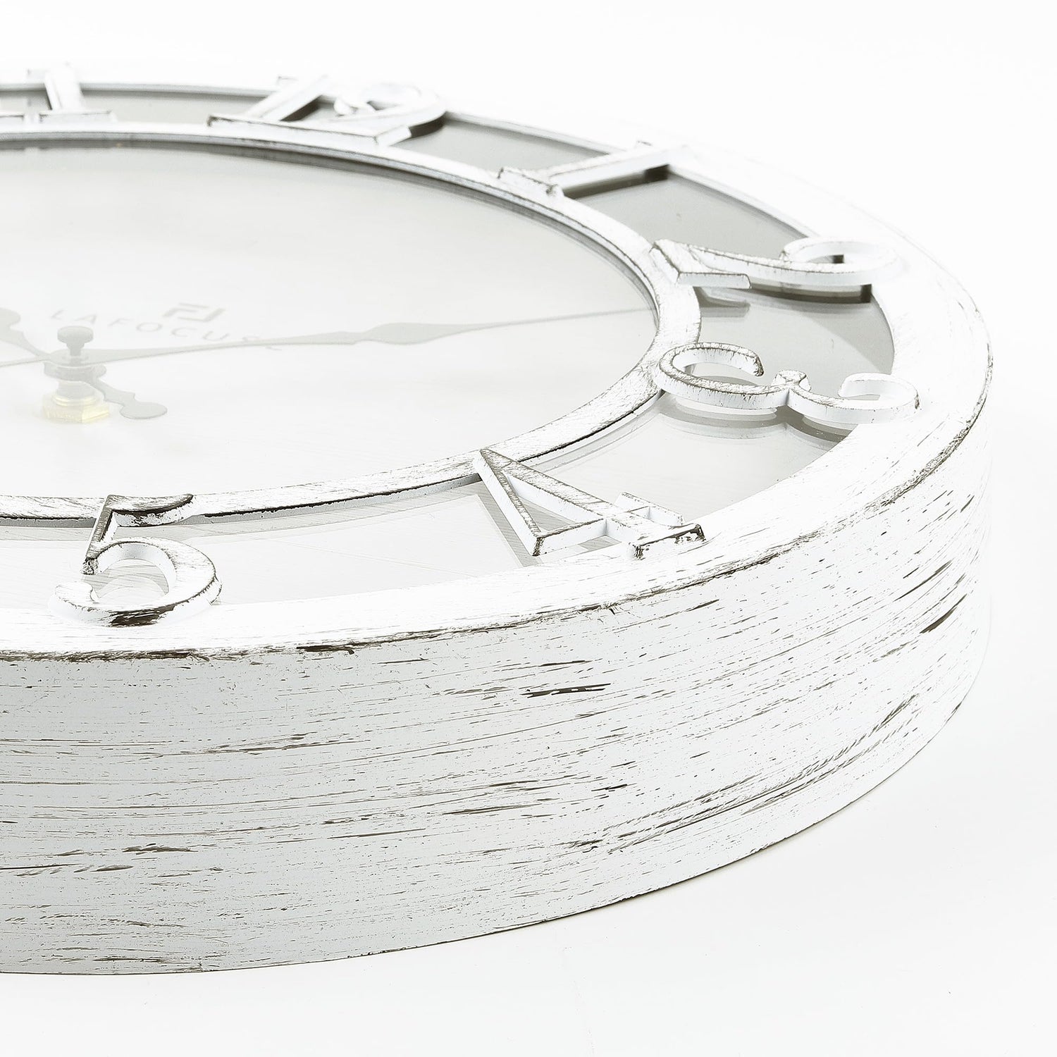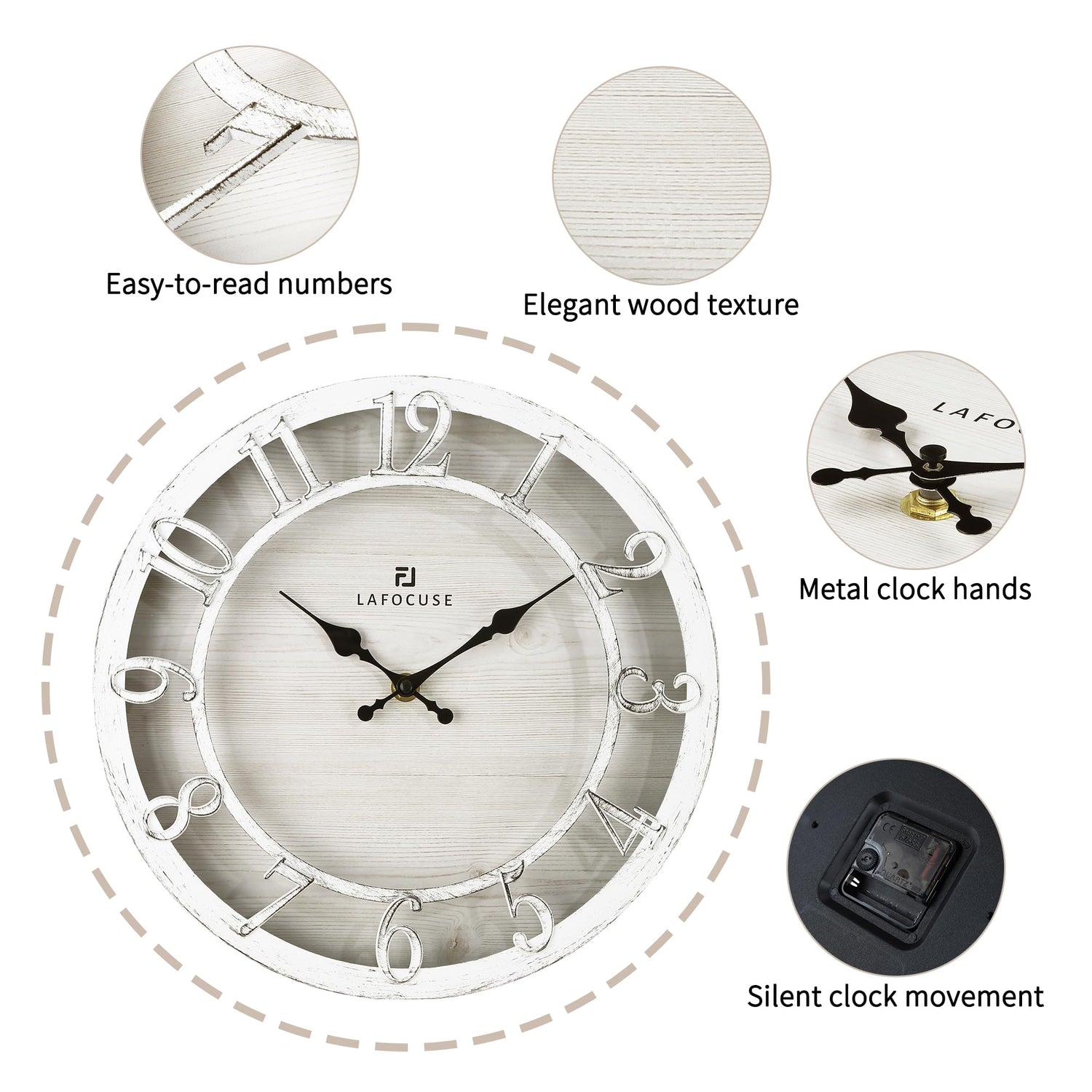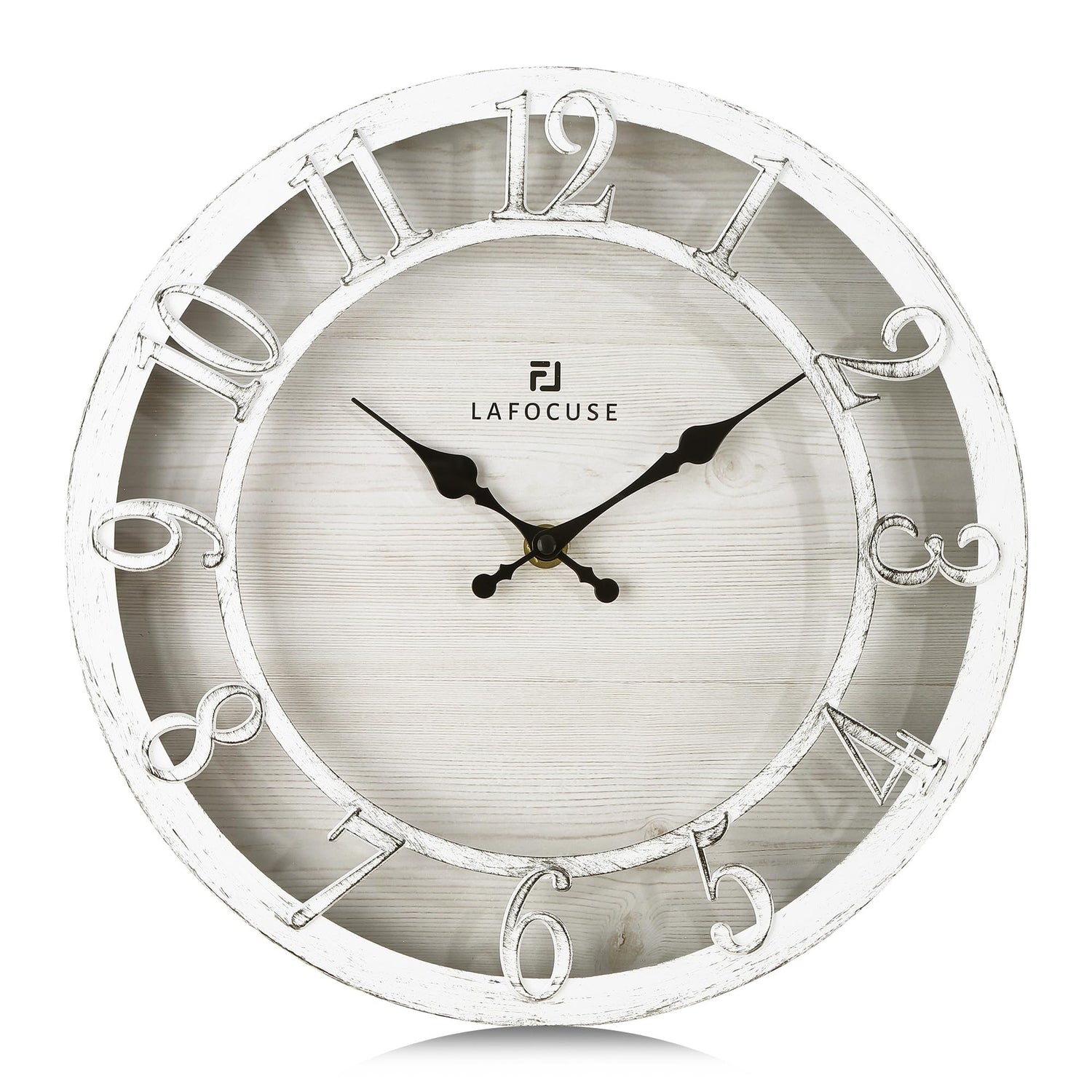 Lafocuse 12 Inch Silent White Wall Clocks Battery Operated, Farmhouse Wall Clock for Kitchen Living Room, Rustic Home Décor