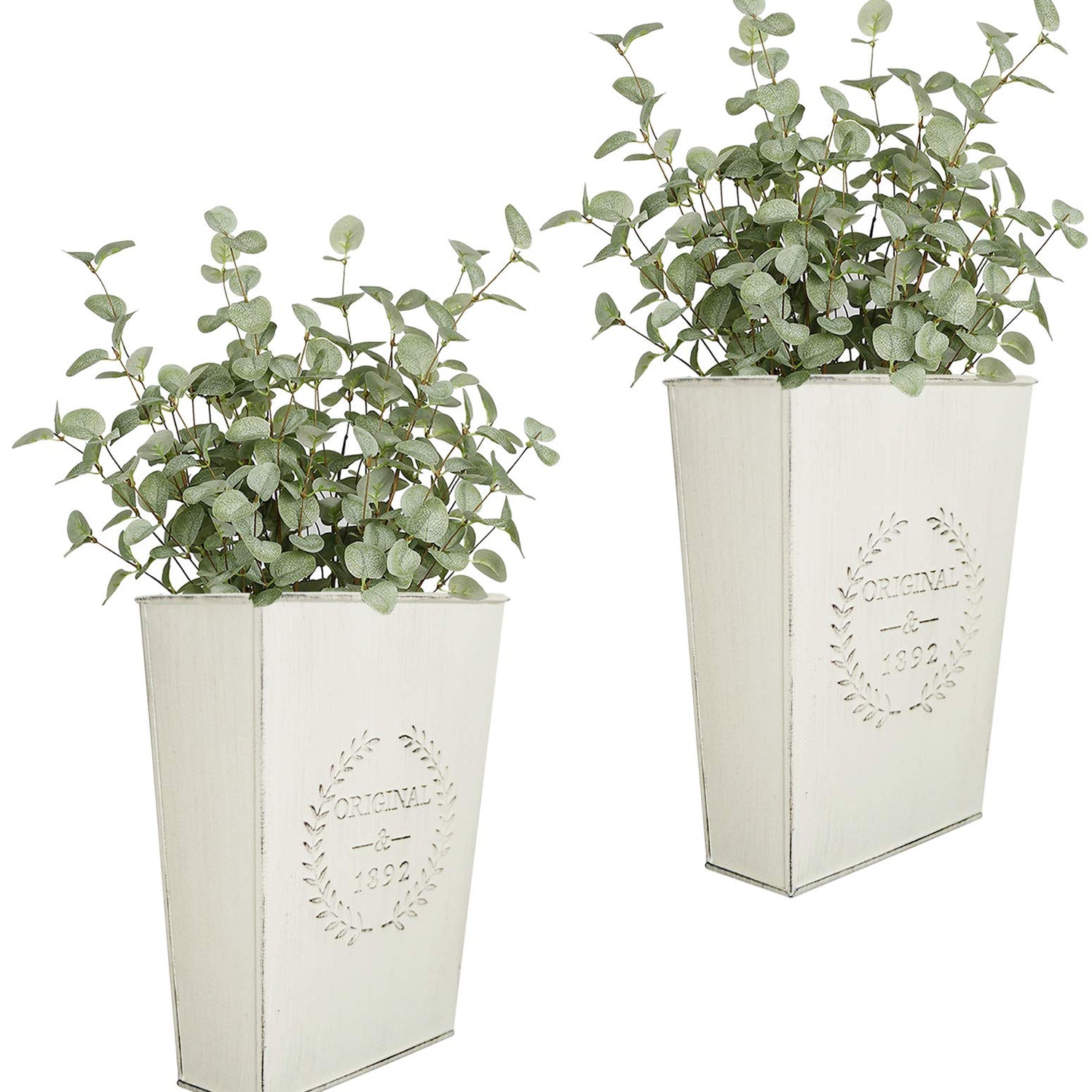 - ✅RUSTIC GALVANIZED WALL PLANTERS:This is a unique set of two galvanized metal wall planters,wall planters are made of high quality galvanized metal and hand painted,coated to prevent rusting,features a vintage finish. Rustic wall decor in your home, planters are great for displaying artificial greenery plants, faux flowers, floral arrangements, seasonal decorations, shrub bouquet, foliage, fake lavender, eucalyptus plants, or cotton,ideas are endless.