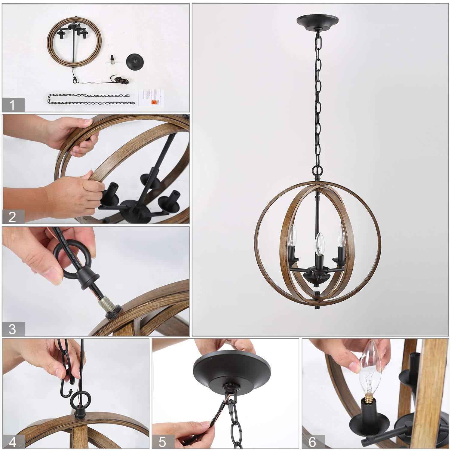 - [Quick Installation] All of our LOG BARN chandeliers arrive pre-assembled to save your energy and time on installation! All you need to do is adjust the chain for your desired hanging height, thread the wire through the chain and canopy, wiring (ground: copper wire; Live: with printed character; Neutral: no printed character) and then screw in the bulbs! The whole installation will take no more than 30 minutes. This hanging orb light fixture also works on sloped, slanted or vaulted ceilings.