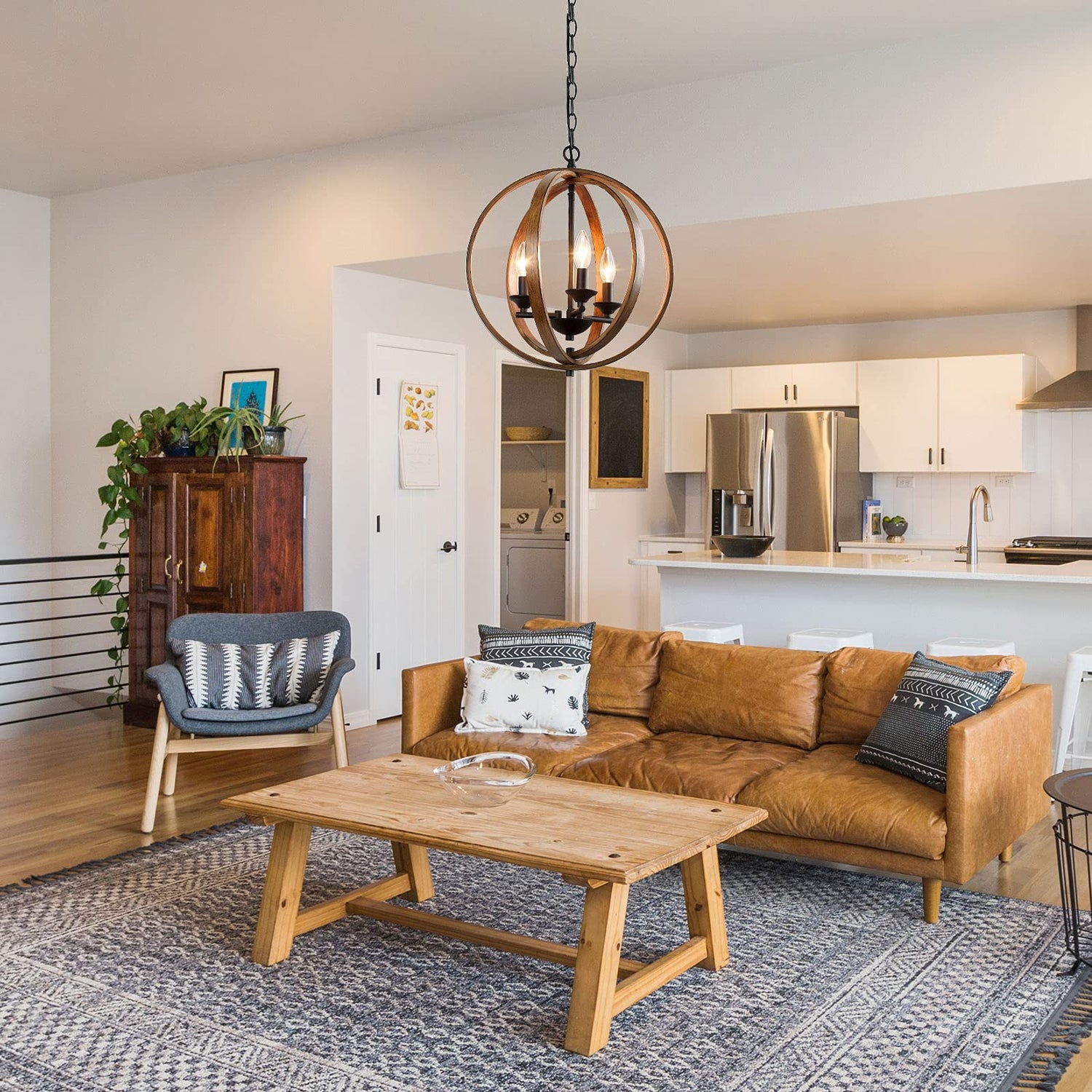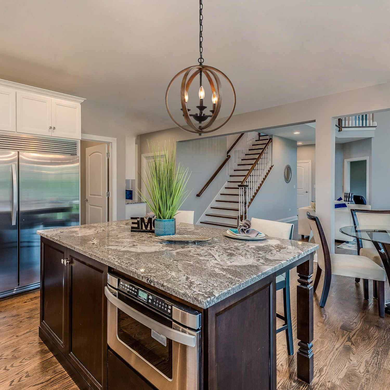 - [Perfect Fits] This rustic globe chandelier is 15” in diameter x 18” in height, the ideal size making it big enough to be the only source of light for any of your rooms. The canopy is 5’’X 1”, designed to cover a standard electrical box. It comes with a 59-inches height adjustable chain allowing you to adjust the height between 77” to 21” from ceiling to bottom based on your need (it includes 10ft cords for a higher ceiling, please contact us to buy the extra chain, we will reply within 12hrs).