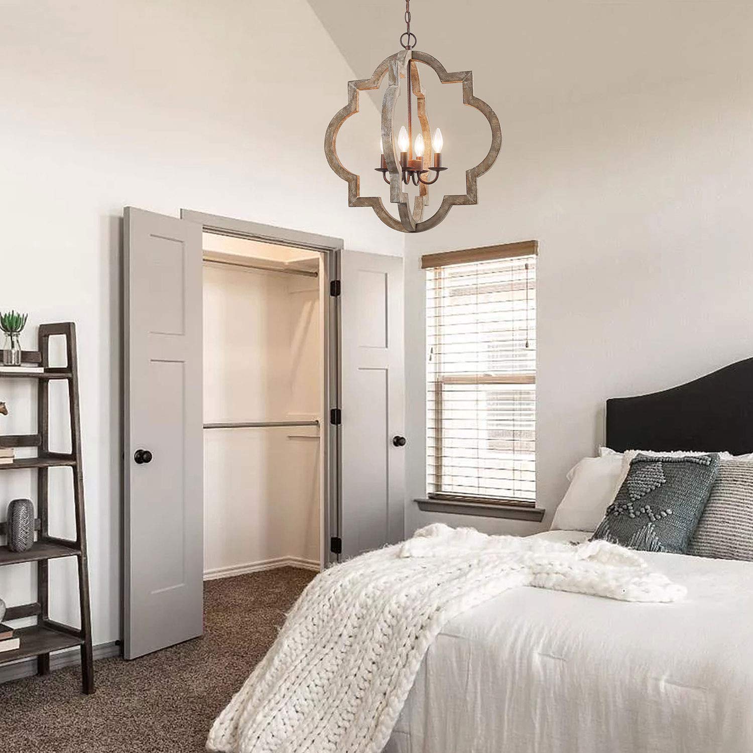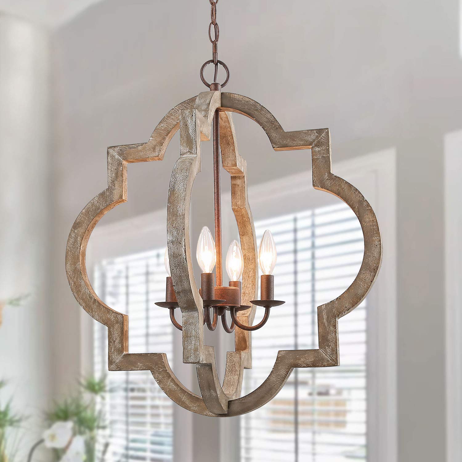 - LUXURY WOOD HANDMADE CHANDELIER: Featuring an openwork quatrefoil design, hand-made wooden frame and rust metal finish, this eye-catching chandeliers will work well in both classic and contemporary farm house settings with a warm and welcoming glow.