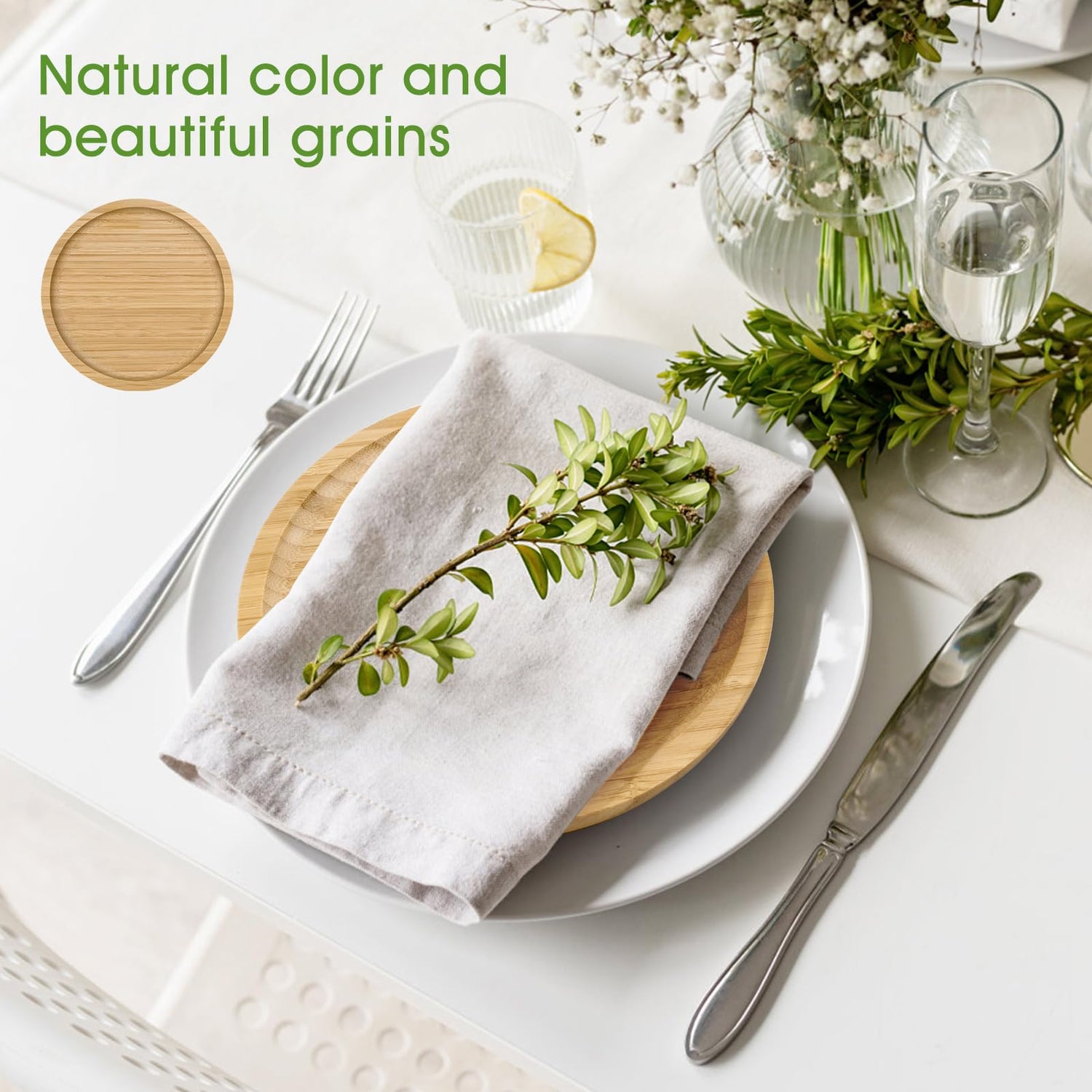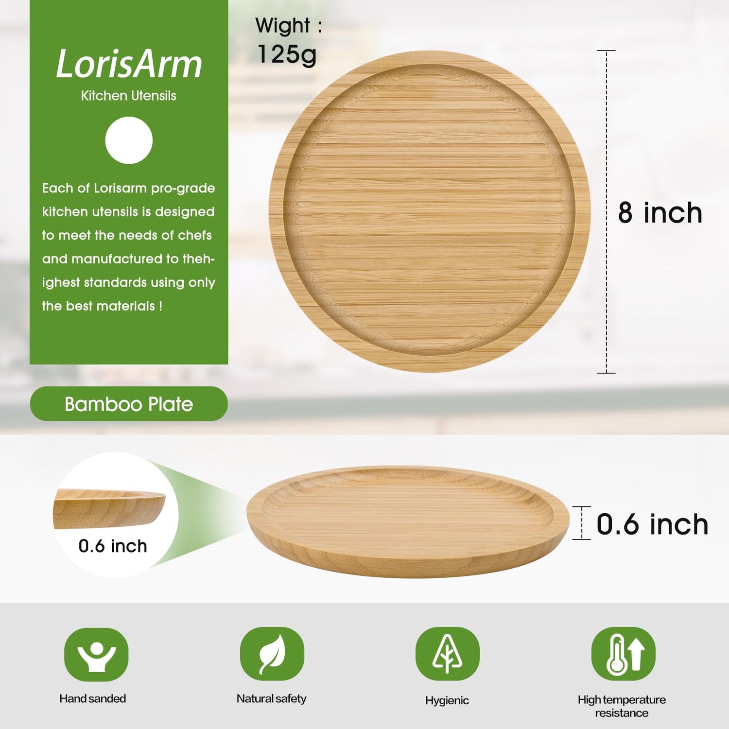 Details: Bamboo Plates 8-inch Round Wooden Plate Reusable