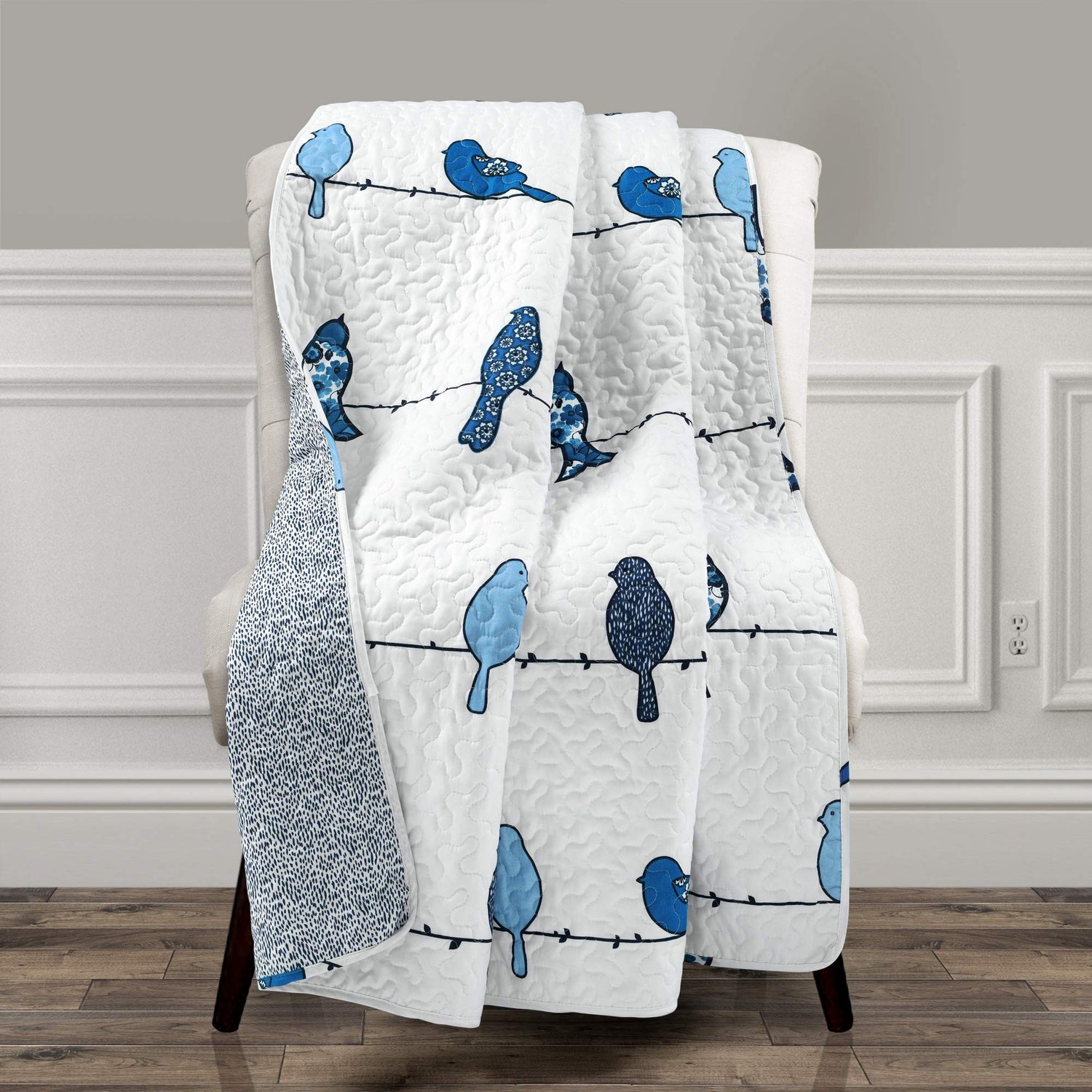 Lush Decor Rowley Birds Reversible Throw Blanket, 50" W x 60" L, Navy - Throw Blankets for Bed - Couch Blanket - Farmhouse Throw Blanket for Couch