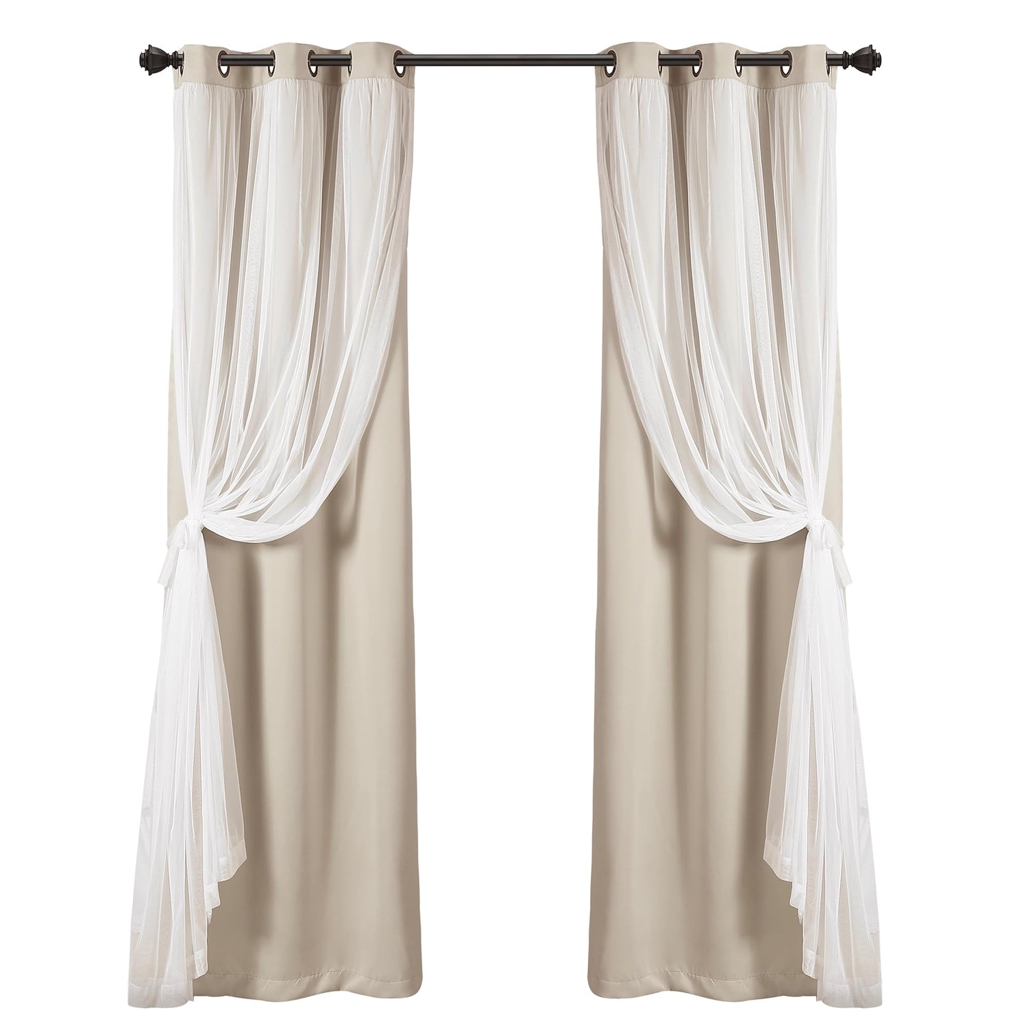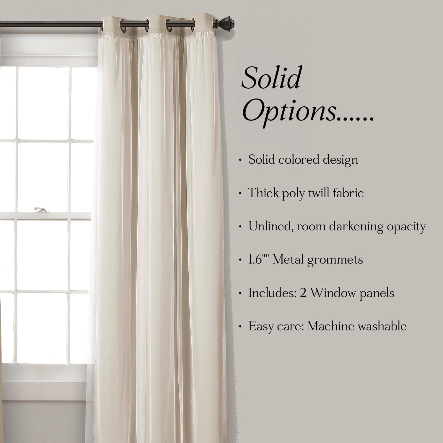 - Chic Window Decor: The Lush Decor Sheer Grommet Curtains With Insulated Blackout Lining adds luxury to your space while giving you multiple looks in one set. The white sheer overlay and classic solid-color design fits in nearly any home decor style.