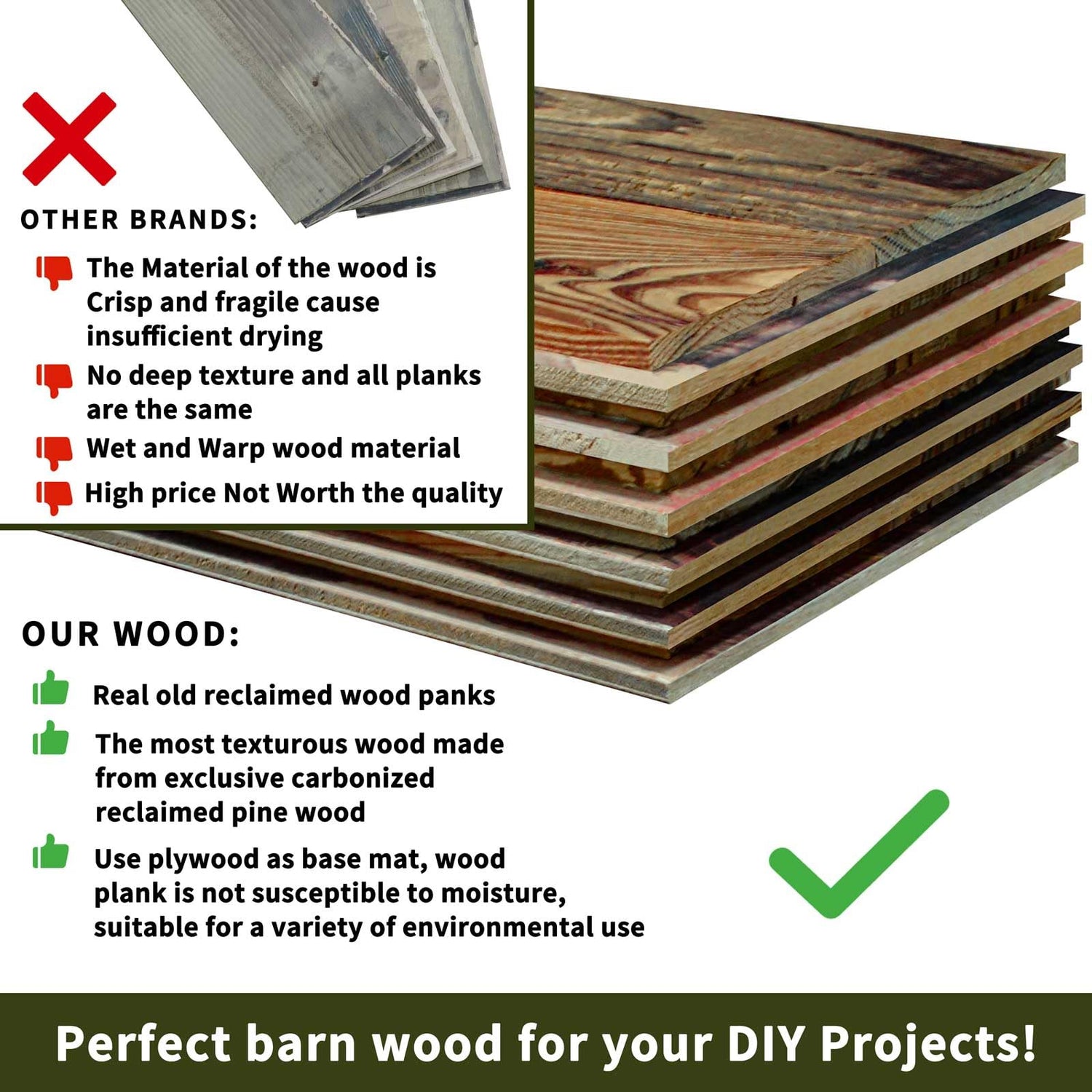 - [Luxdecor Real Wood Wall Planks]:100% Real Barn Wood Wall Planks With Natural Knots and Dents, the Surface Of Wood Shiplap Planks Is Processed With High Temperature Carbonization, the Real Wood Wall Shiplap Planks Is Non-Toxic, Sterilized and More Safe For Children,Voc Free Process Ensures These Stick on Shiplap Planks For Walls Are Safe To Use In Home