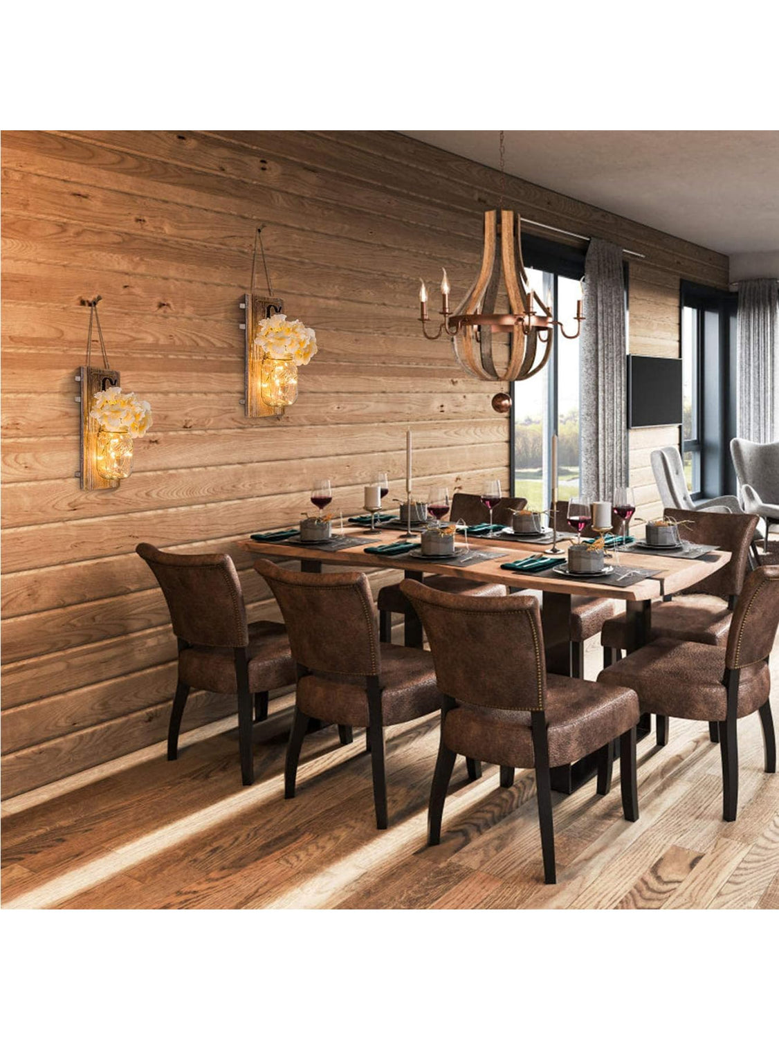 Mason Jar Wall Decor -Rustic with Hydrangea Flowers - Rustic Farmhouse Wall Sconces, 2 Pack, Easy Installation (Khaki Planks)