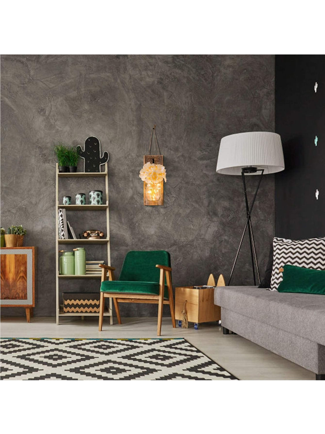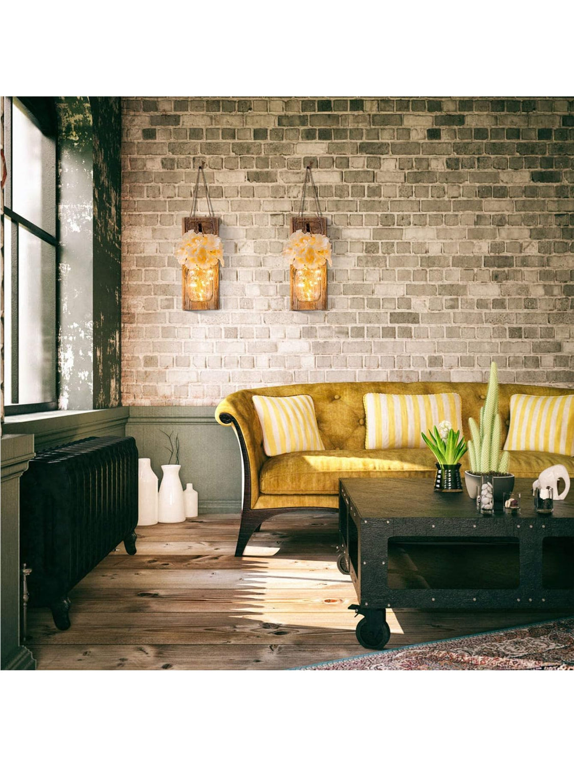 • DECORATIVE SET: Package includes 2 rustic mason jar wall sconces with pre-installed LED fairy lights and silk flowers for charming farmhouse decor