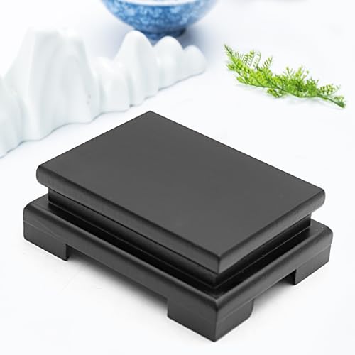 MDEOOSKY Wooden Display Stand Rectangle Wood Display Base Display Risers Rectangle Vase Riser Teapot Aquarium Lamp Base Home Decoration 5.11" W x 3.74" D x 1.69" H (Black)