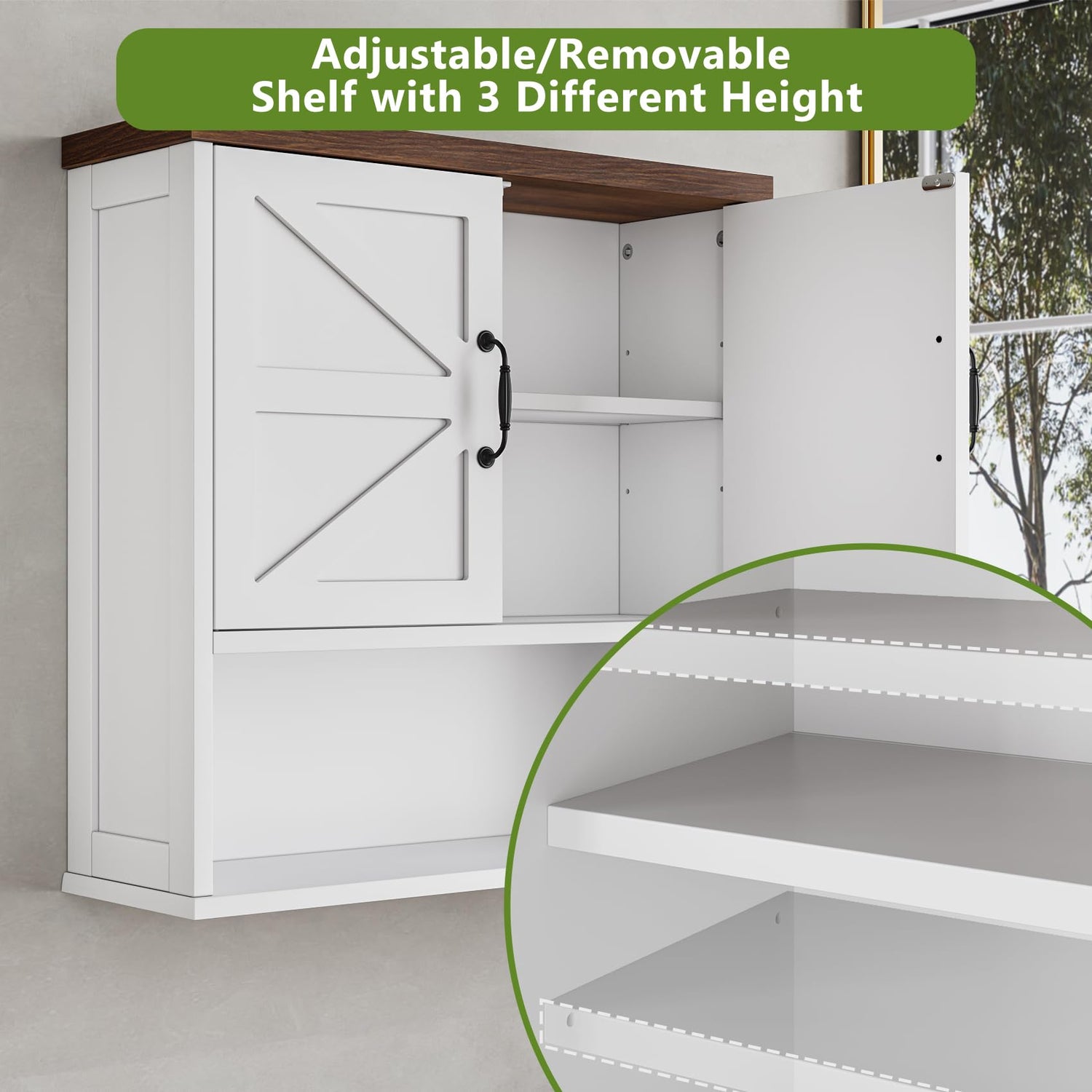 - [Extra Bathroom Wall Storage] This bathroom storage cabinet with 2 barn doors and adjustable shelves, farmhouse style, wall mount profile to fit wall space, provides much extra storage space in your bathroom