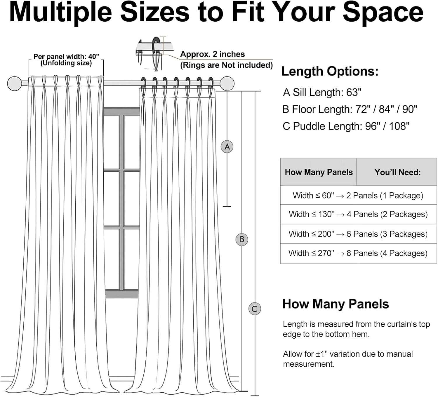 - Pinch Pleat design:Each panel features 7 sewn-in pinch pleats for crisp, graceful folds that hold their shape.Pinch pleated curtains use more fabric than regular curtains, creating a luxury curtain with elegant folds.The result? A clean, upscale appearance that fits effortlessly with modern, organic, or transitional interiors.