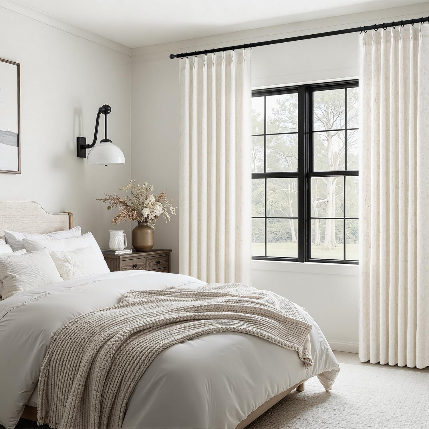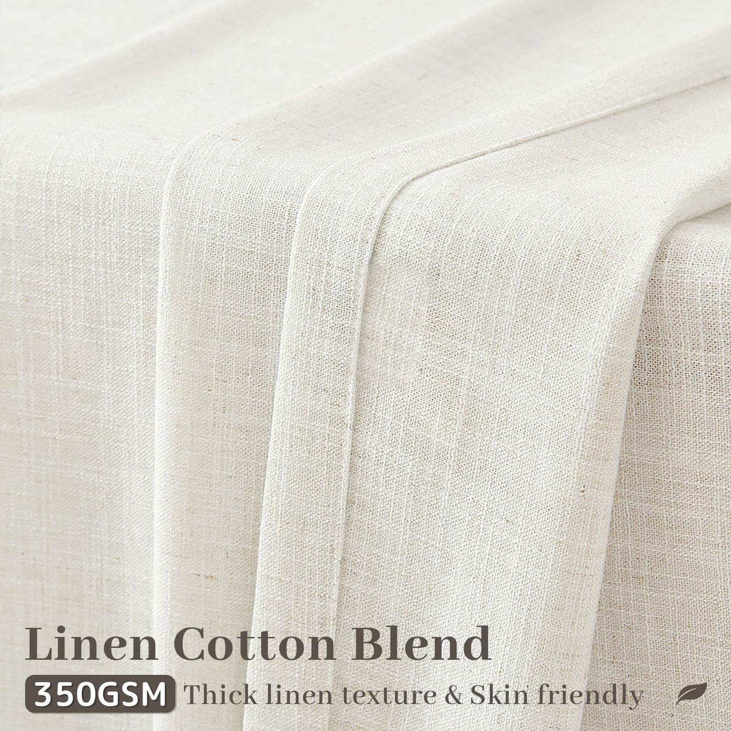- Thick Linen & Rich Texture:These Linen Curtains Crafted from a 350 GSM blend of flax linen, cotton, and polyester, these curtains feel thick and premium—just like true heavyweight linen. The fabric drapes beautifully with natural texture and softness, adding instant warmth and elegance to your space.