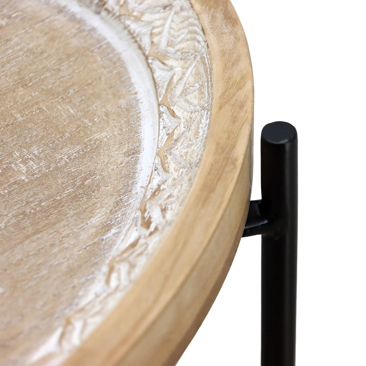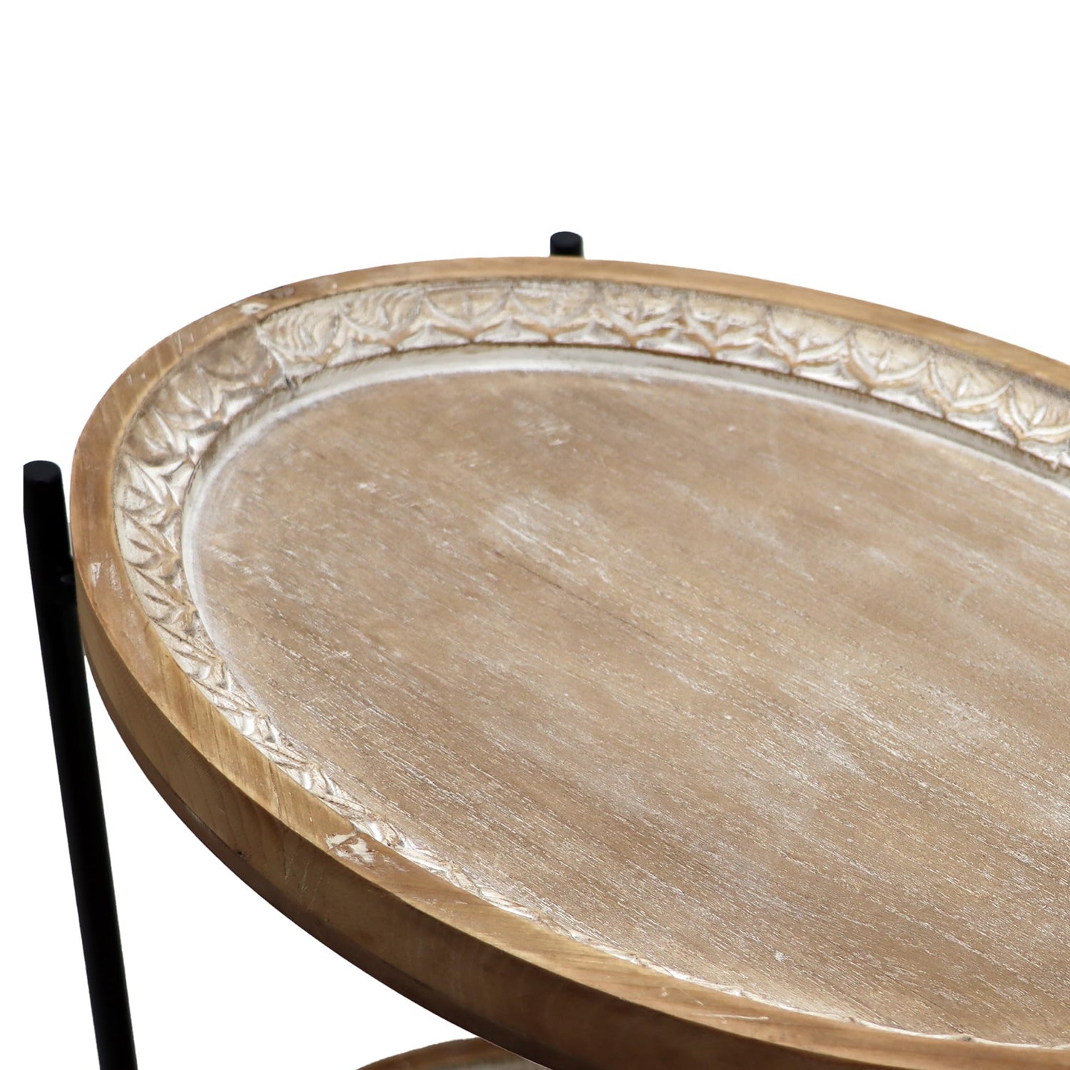 Details: Elevate your living space with this versatile farmhouse wood end table featuring a tray top with carved detail.