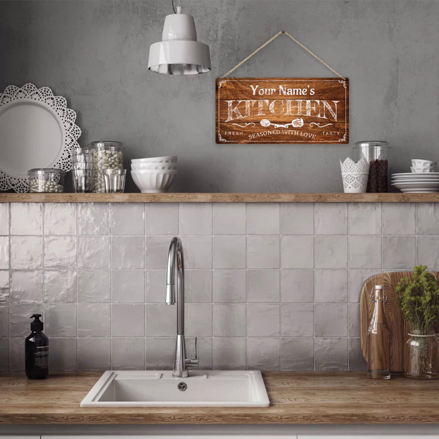 Personalized Kitchen Sign Rustic Farmhouse Home Wall Art Décor Custom Any Name Wooden Plaque Housewarming Gift Ideas For Mother & Women