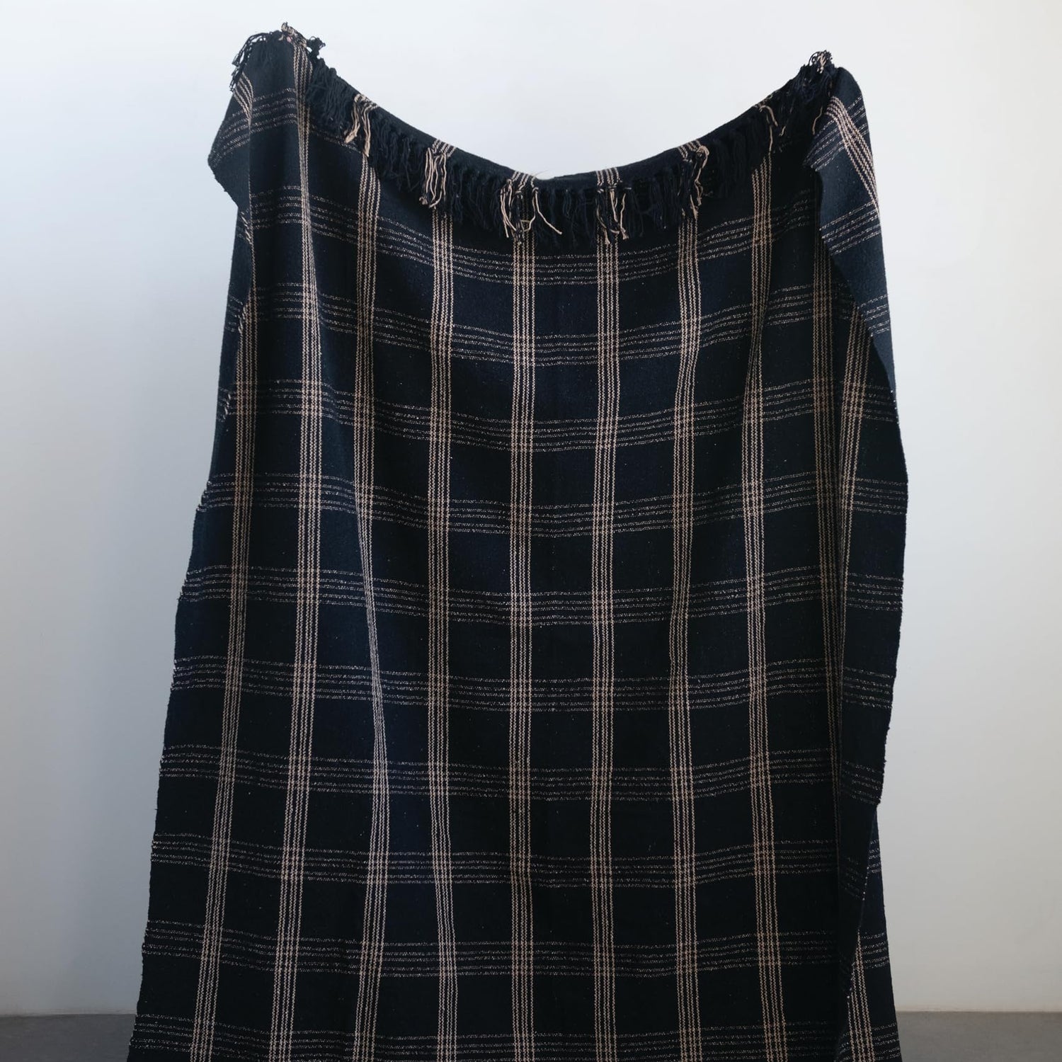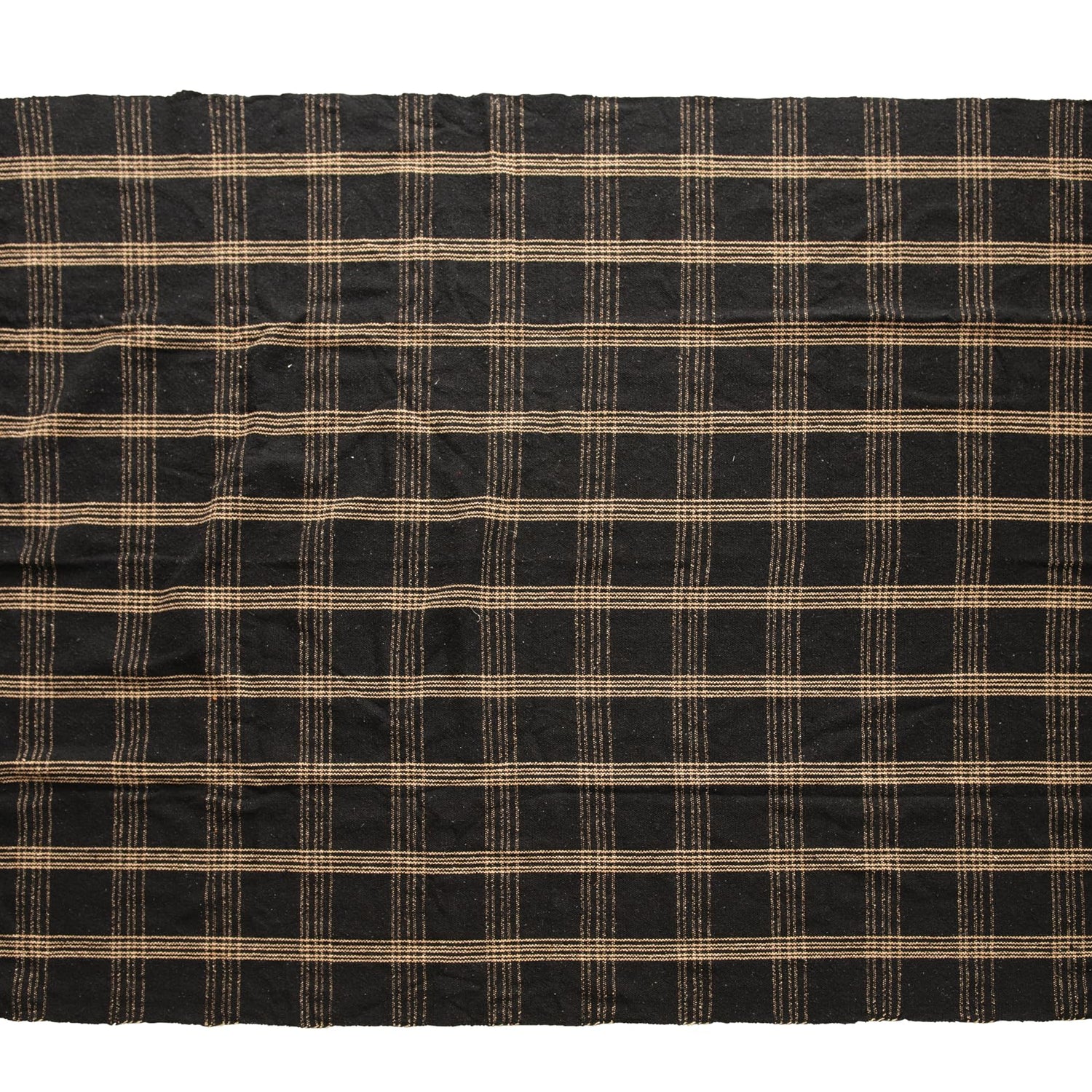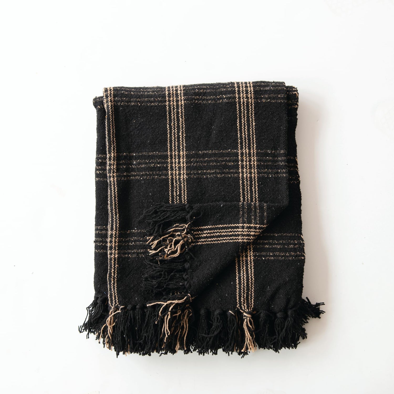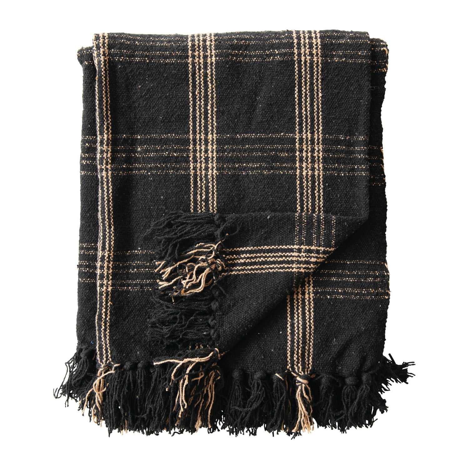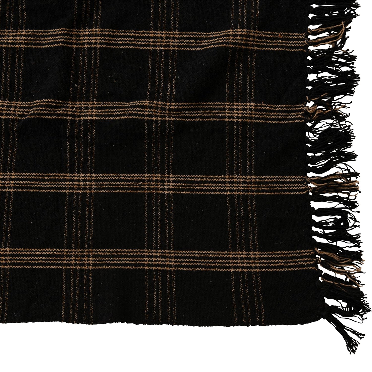 Plaid Black & Tan Fringed Woven Cotton Blend Throw
