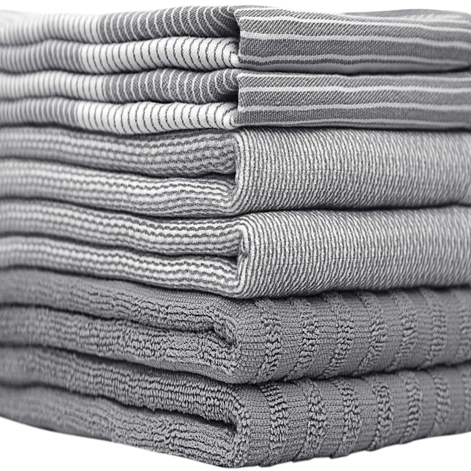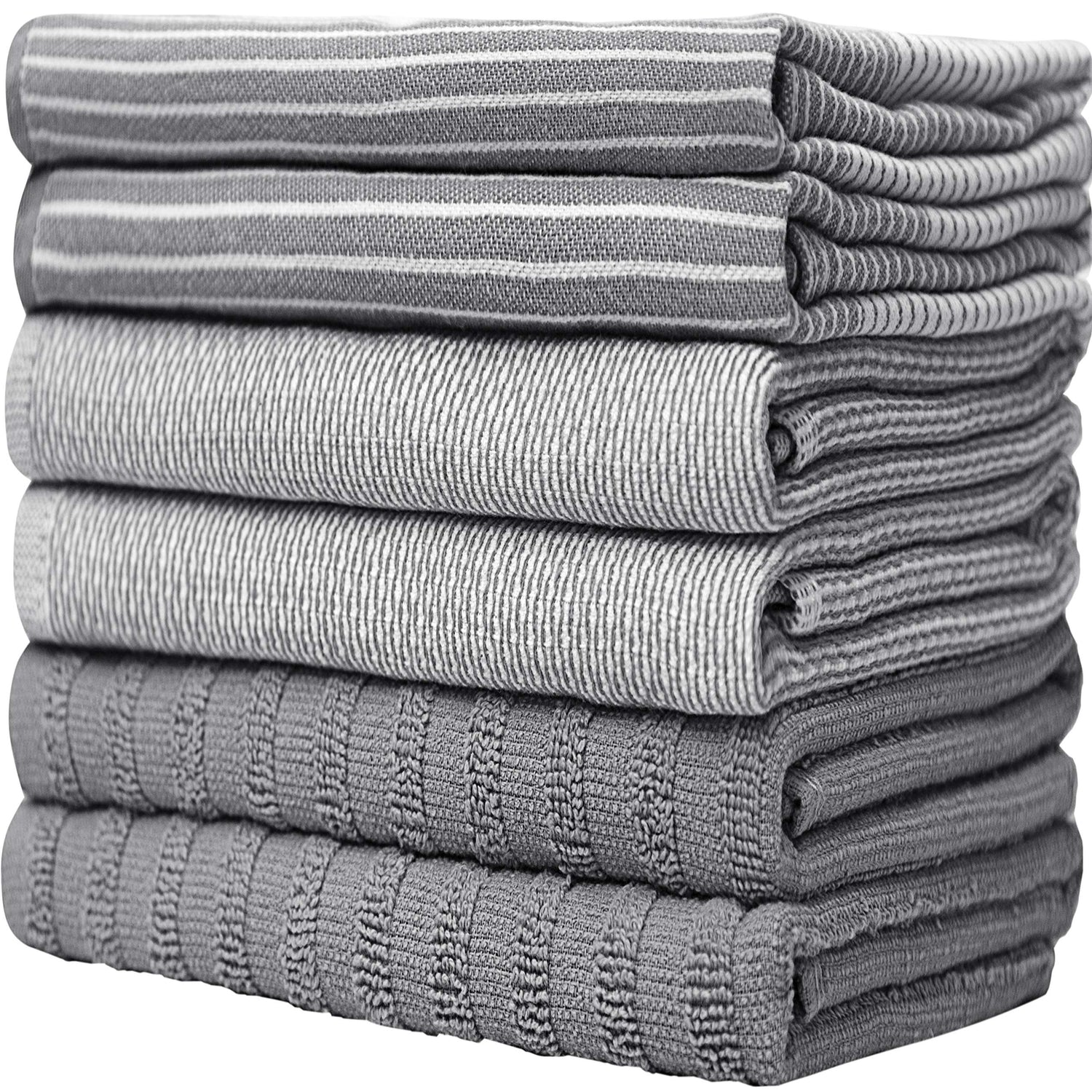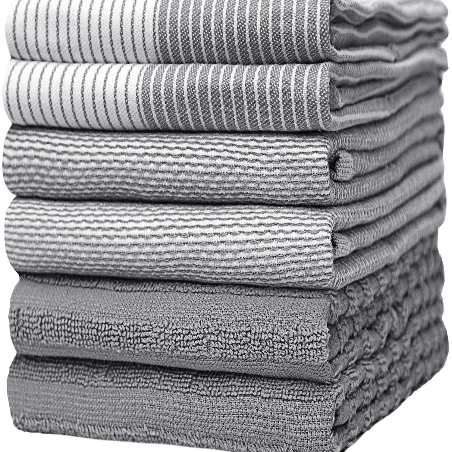 Premium Kitchen Towels (20”x 28”, 6 Pack) | Large Cotton Kitchen Hand Towel | Flat & Terry Dish Cloths | Highly Absorbent Tea Towels Set with Hanging Loop | Gray