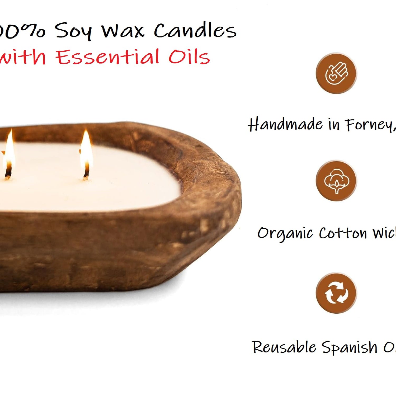 - Premium Quality - Handmade with responsibly sourced Spanish oak bowls, 100% natural soy wax, pure cotton braided wicks, and a high-quality fragrance & essential oil blend. We do not use carcinogenic paraffin wax or dyes.