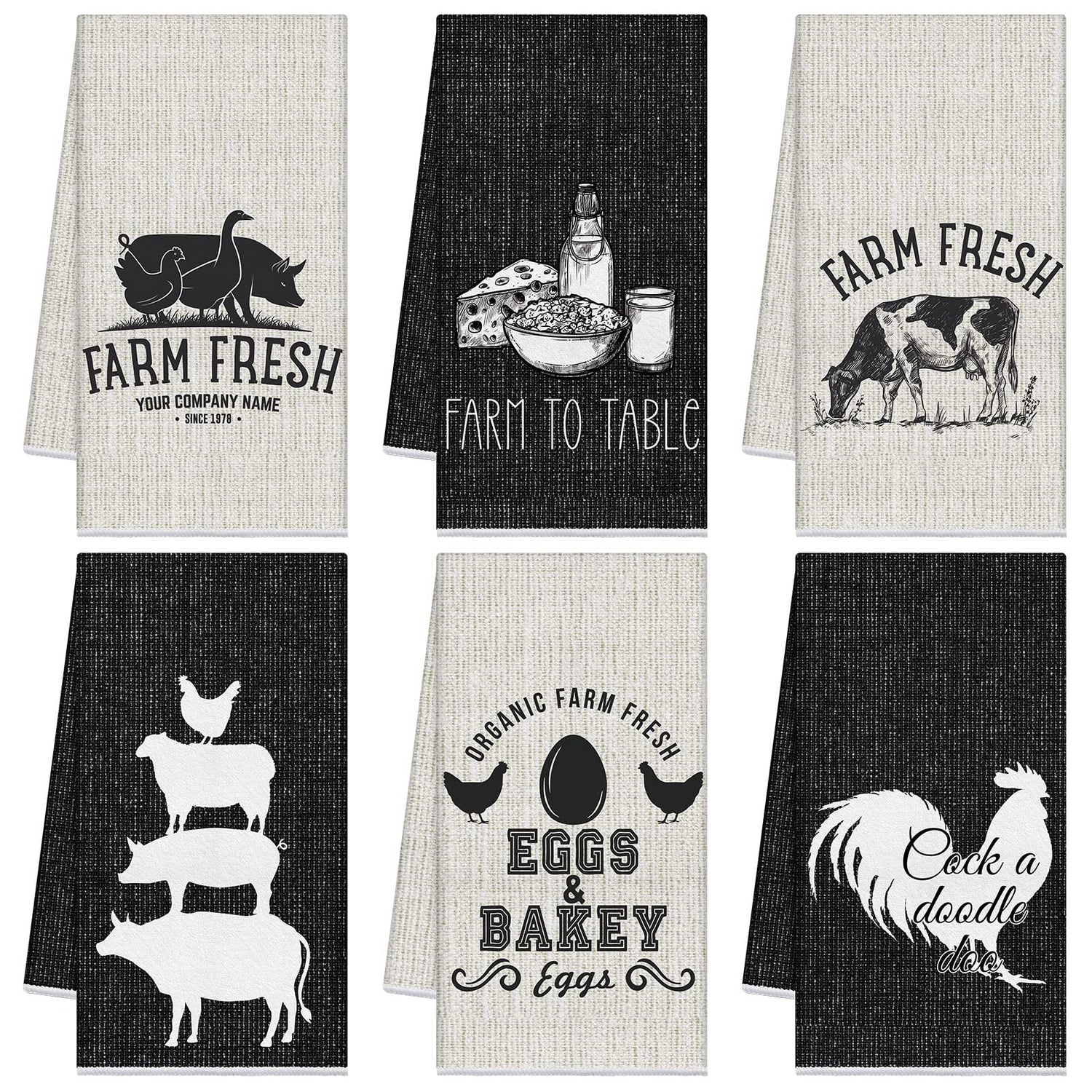 Redbaker 6 Pcs Farm Animal Kitchen Towels Farmhouse Funny Dish Towel Rustic Hand Towels Rooster Cow Pig Decorative Tea Dishcloth Absorbent with Hanging Loop for Kitchen Bathroom Housewarming Gift