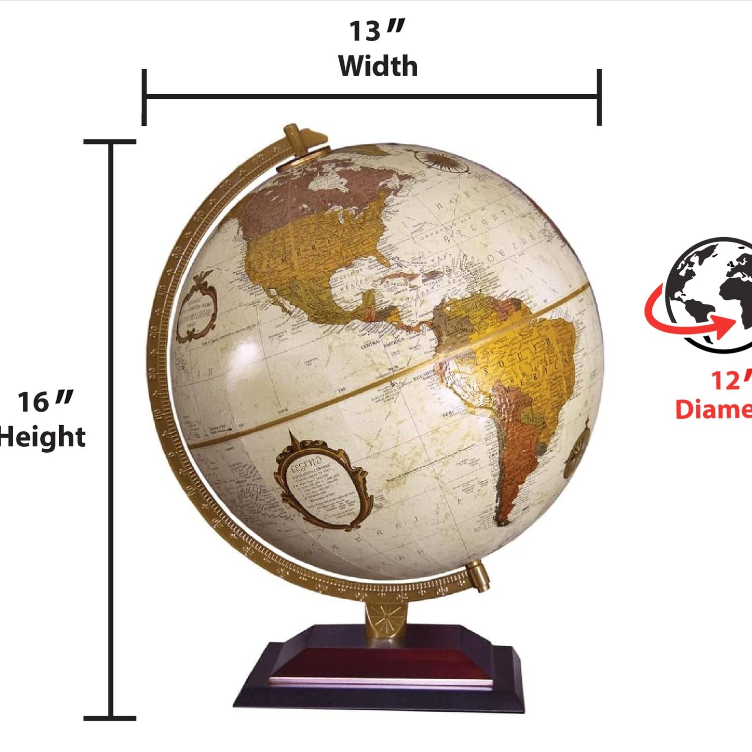 Replogle Andorra Globe, 12" Desktop World Globe, Raised Relief, Up-to-date Cartography, Smart Intelli-enabled World Map, Made in the USA, Antique