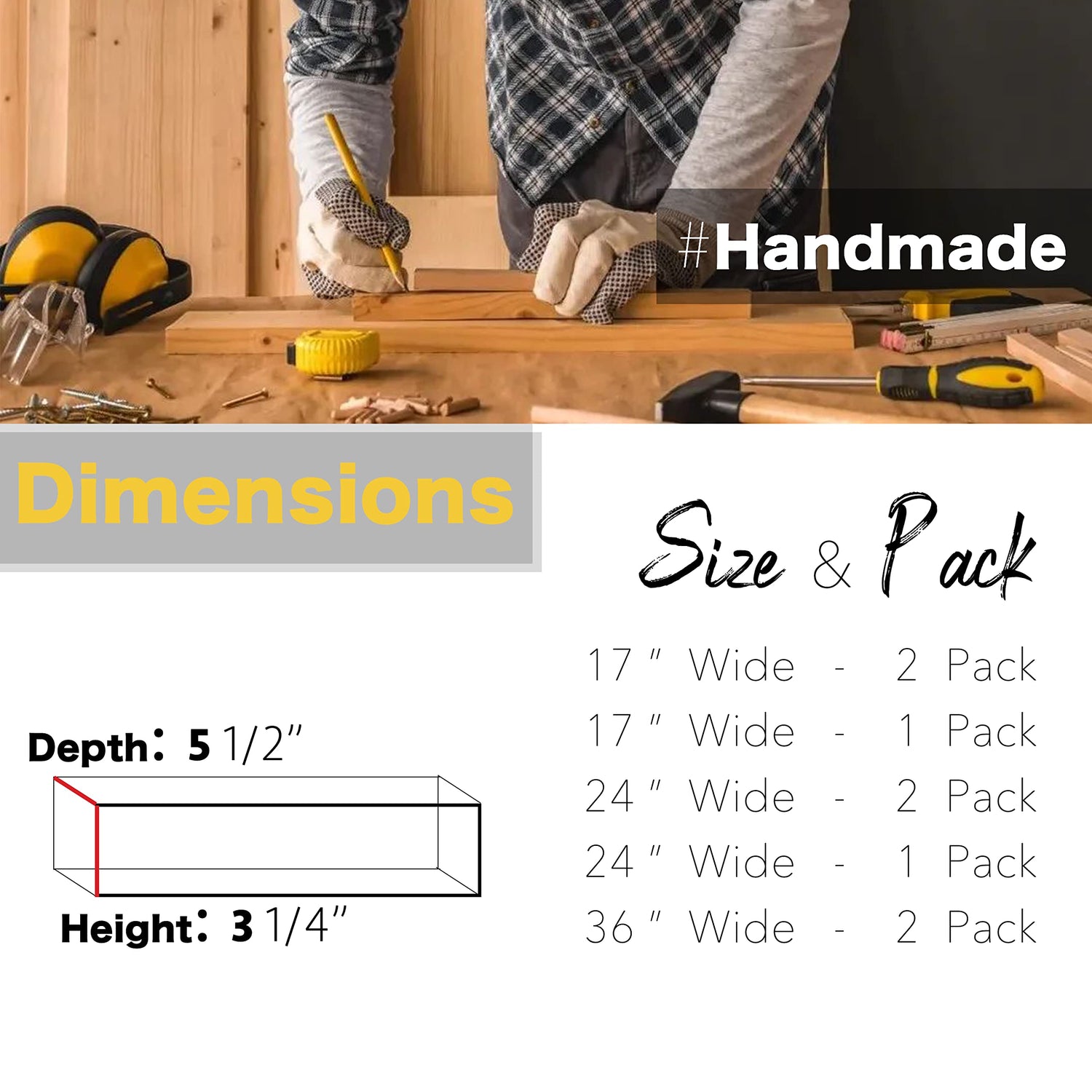 - 2 Pack Floating Shelves Including All Hardware. Available in 5 1/2" DEEPTH and 17", 24" or 36" Lengths!