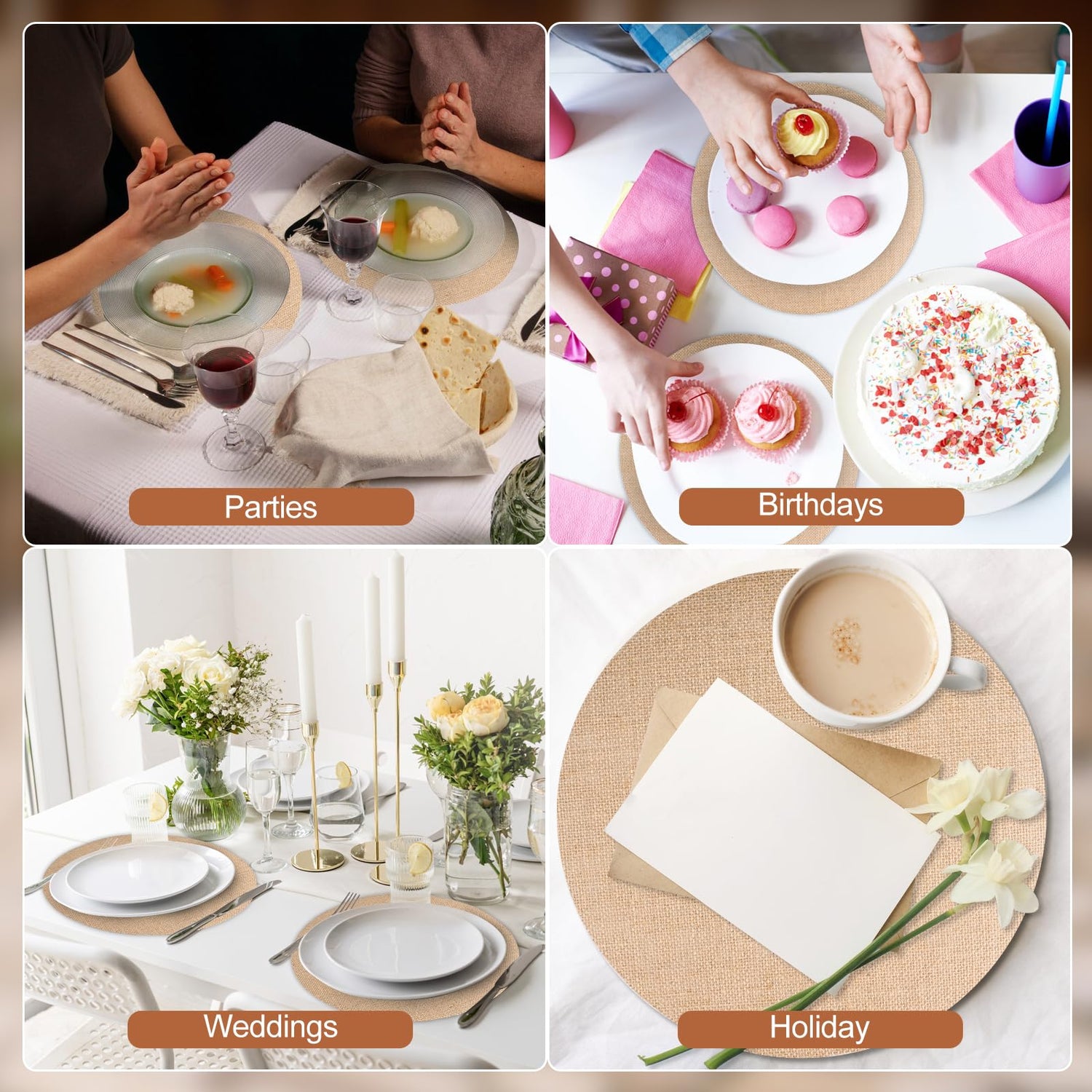 - Natural and Simple Style: Our round burlap placemats feature a classic woven design, showing a rustic and natural country style, perfect for table settings with bohemian and farmhouse decor.
