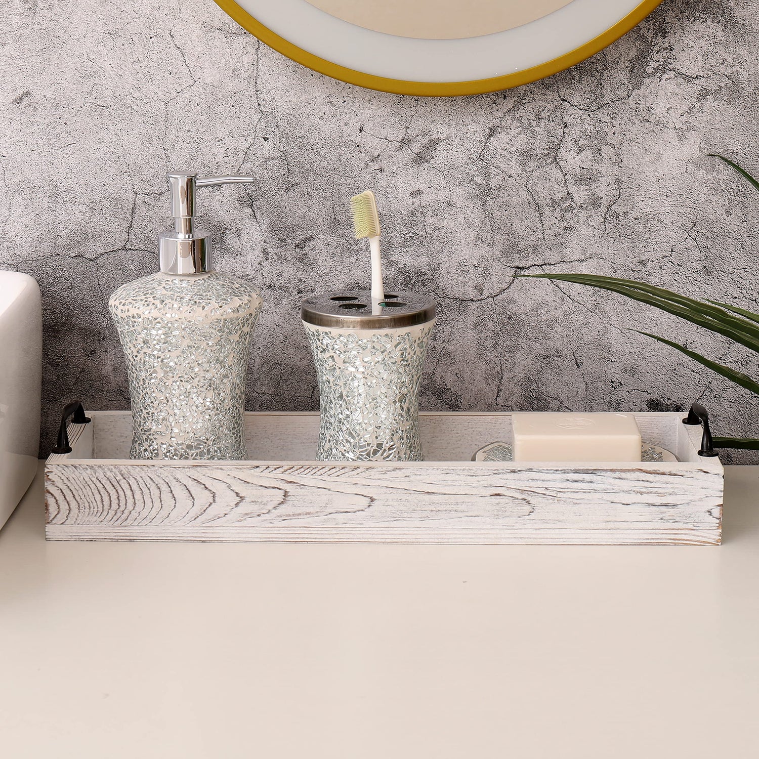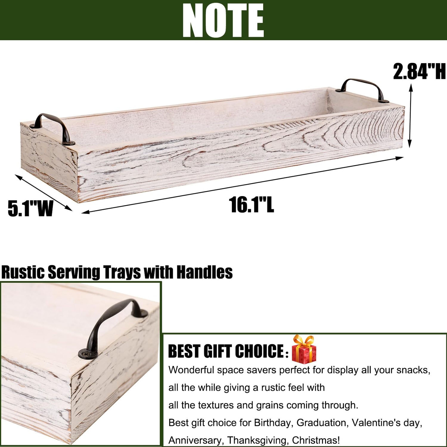 Rustic Wooden Serving Trays Rectangular with Handle,Ottoman Tray for Living Room 16 Inch Long for Serving Wine(whitewashed)