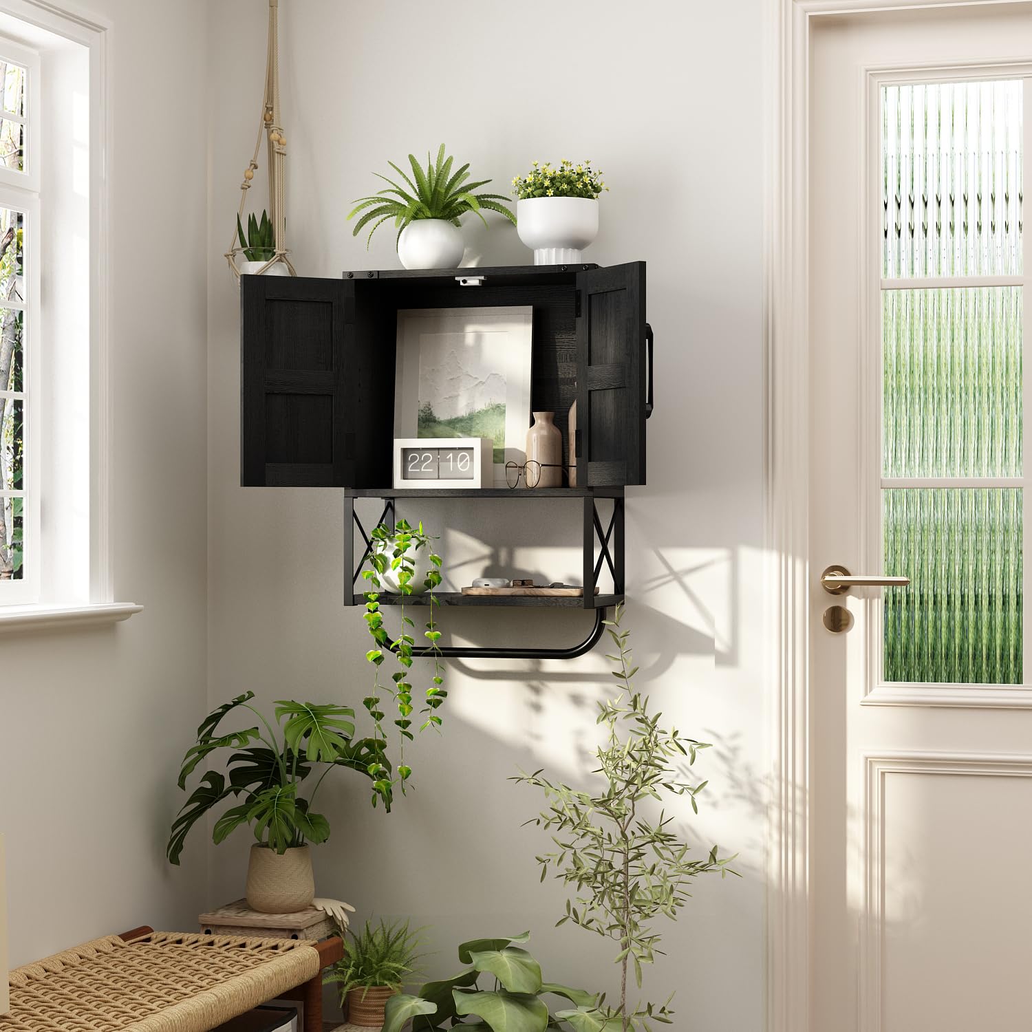 - 【VINTAGE FARMHOUSE DESIGN】 - The wall-mounted cabinet is made of wooden frame and vintage wood grain surface, combined with some rustic metal parts. Available in 3 colors for your choice, the vintage wood grain is full of rustic country atmosphere and fits perfectly with the style of the room.