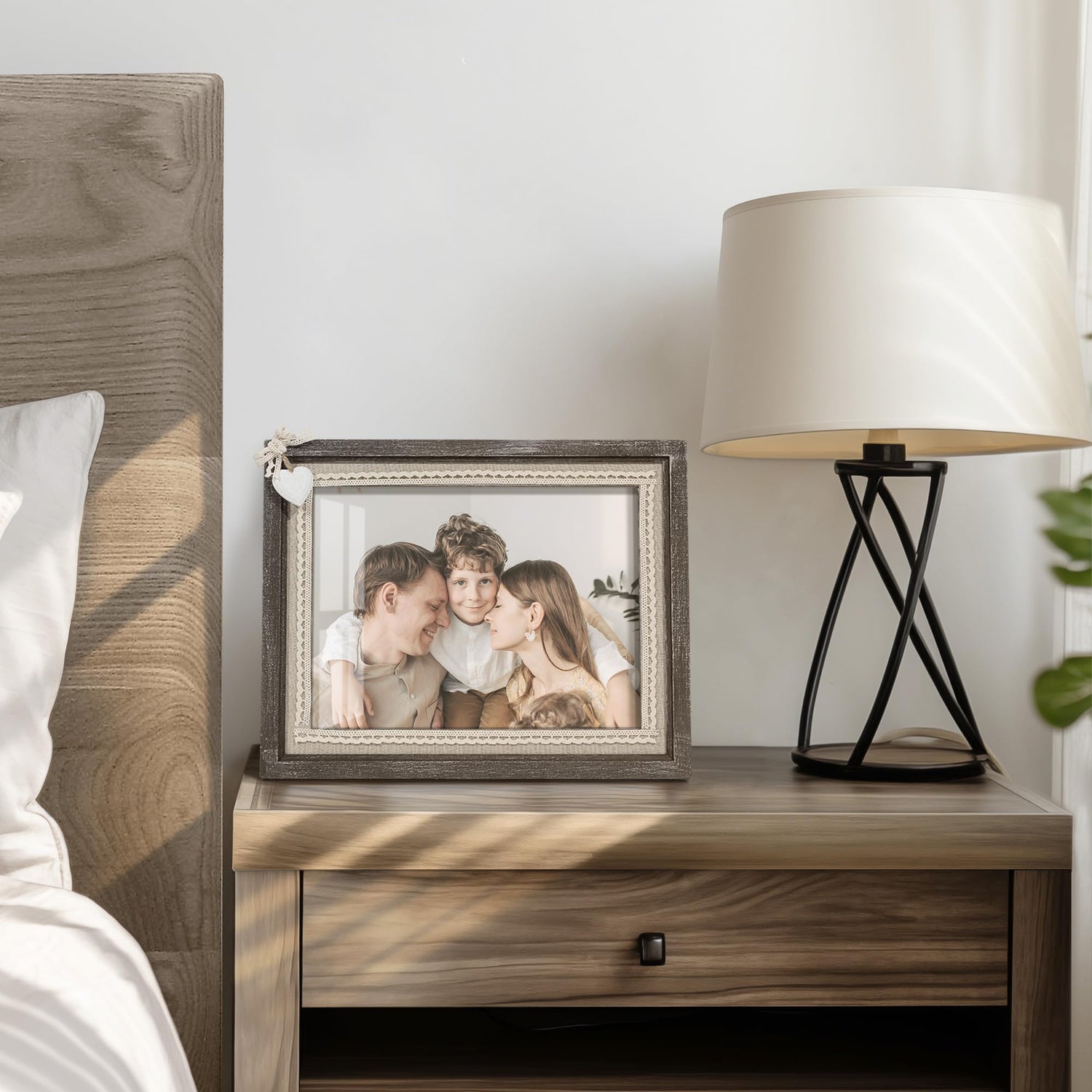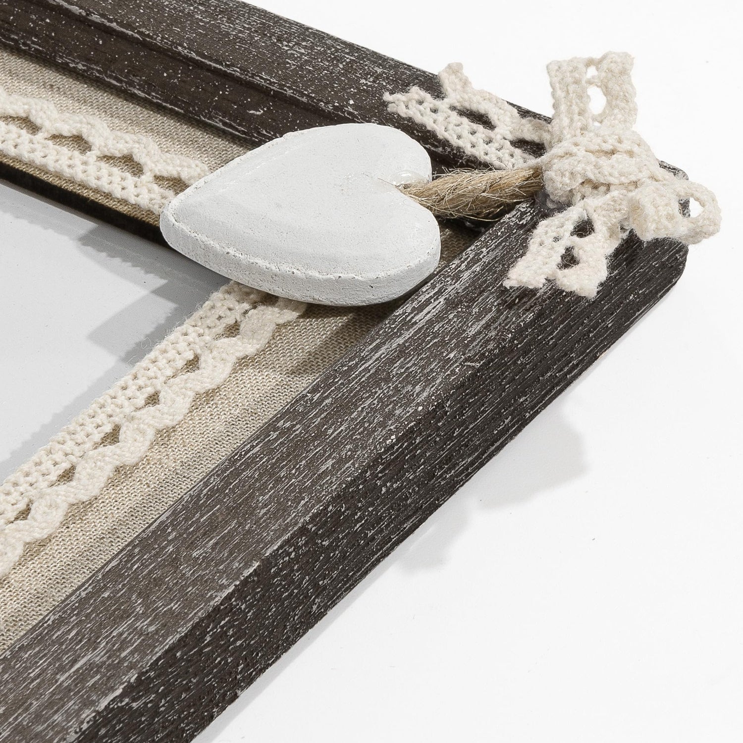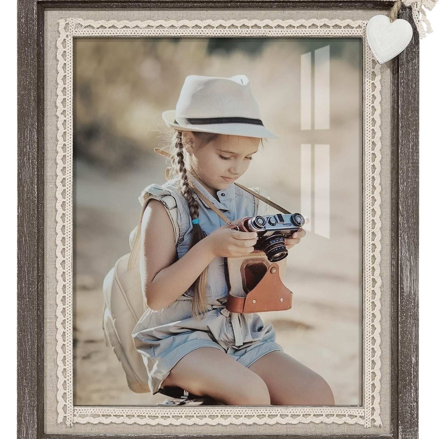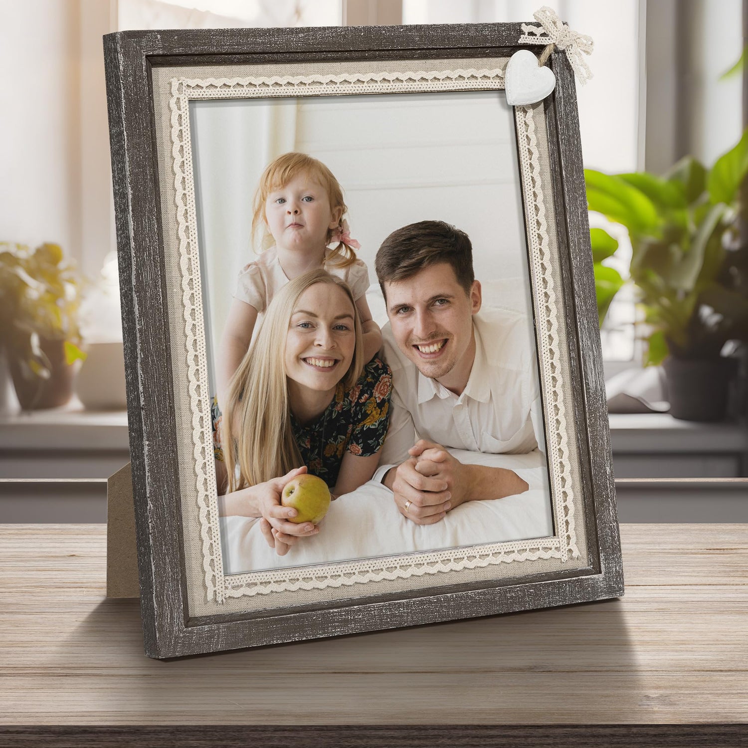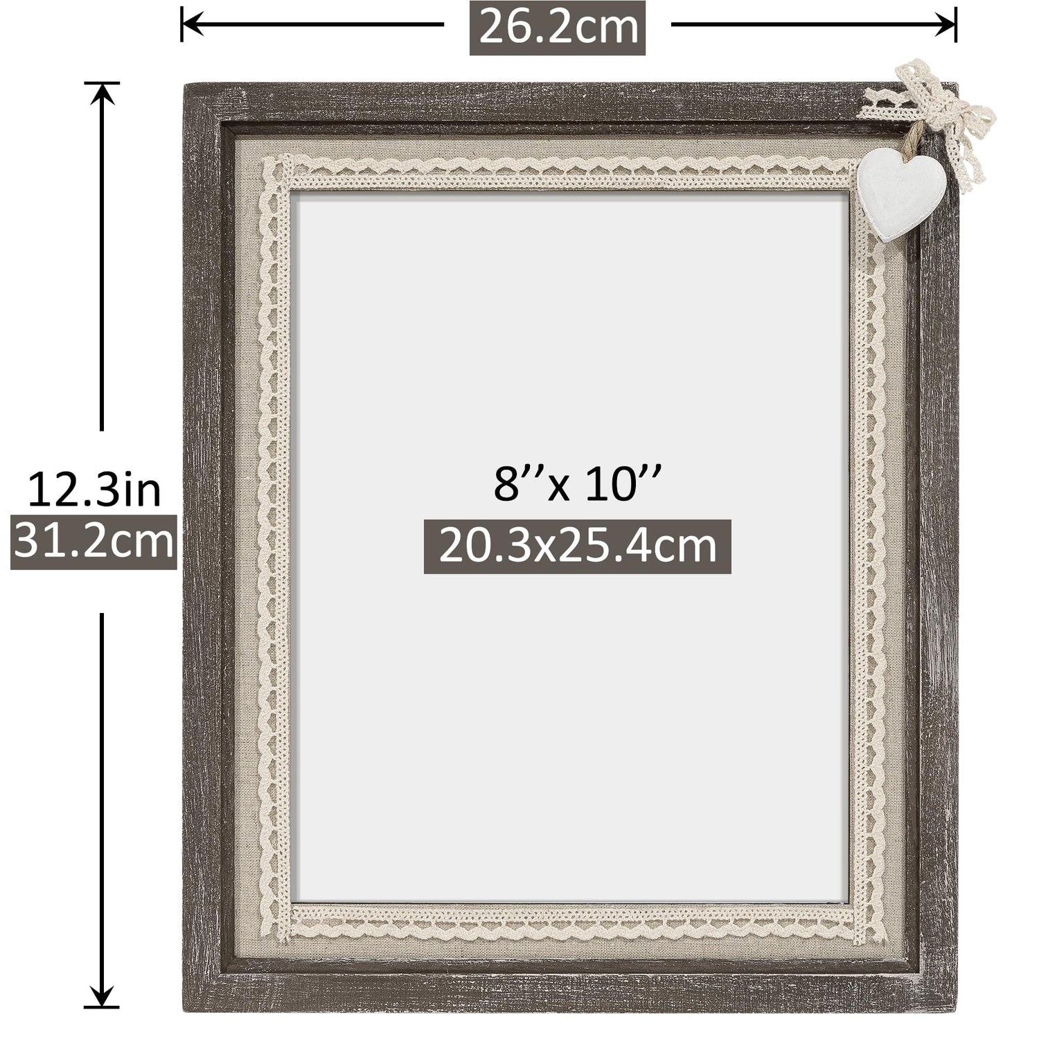 • RUSTIC PICTURE FRAMES: The country wood creat a warm, loving feel to the frame with Lace trim and white heart decoration in the upper right corner, ideal for collecting and treasuring your loved one or precious memory.