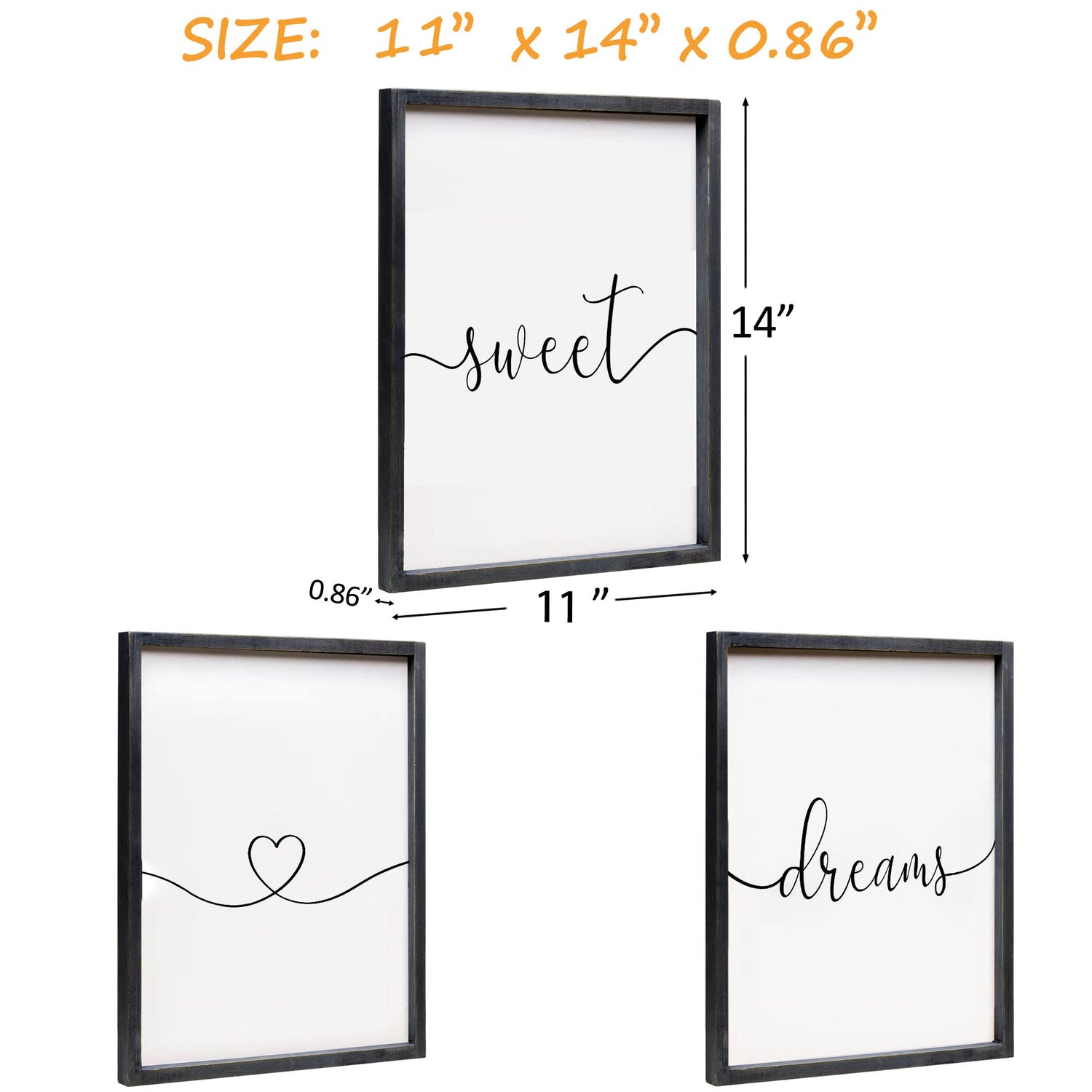 Set of 3 Framed Farmhouse Sweet Dreams Sign 11x14” Above Bed Wall Decor for Bedroom Decor Wall Art Wood Signs (11"x14", Black)